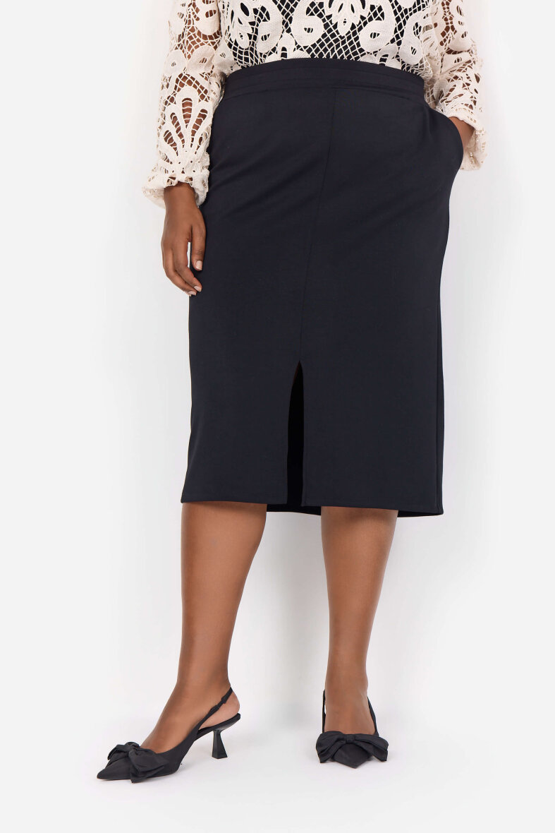 Klassisk sort mellem lang nederdel i den blødeste kvalitet fra Wasabiconcept. Nederdelen er lavet i et klassisk design med slids foran.