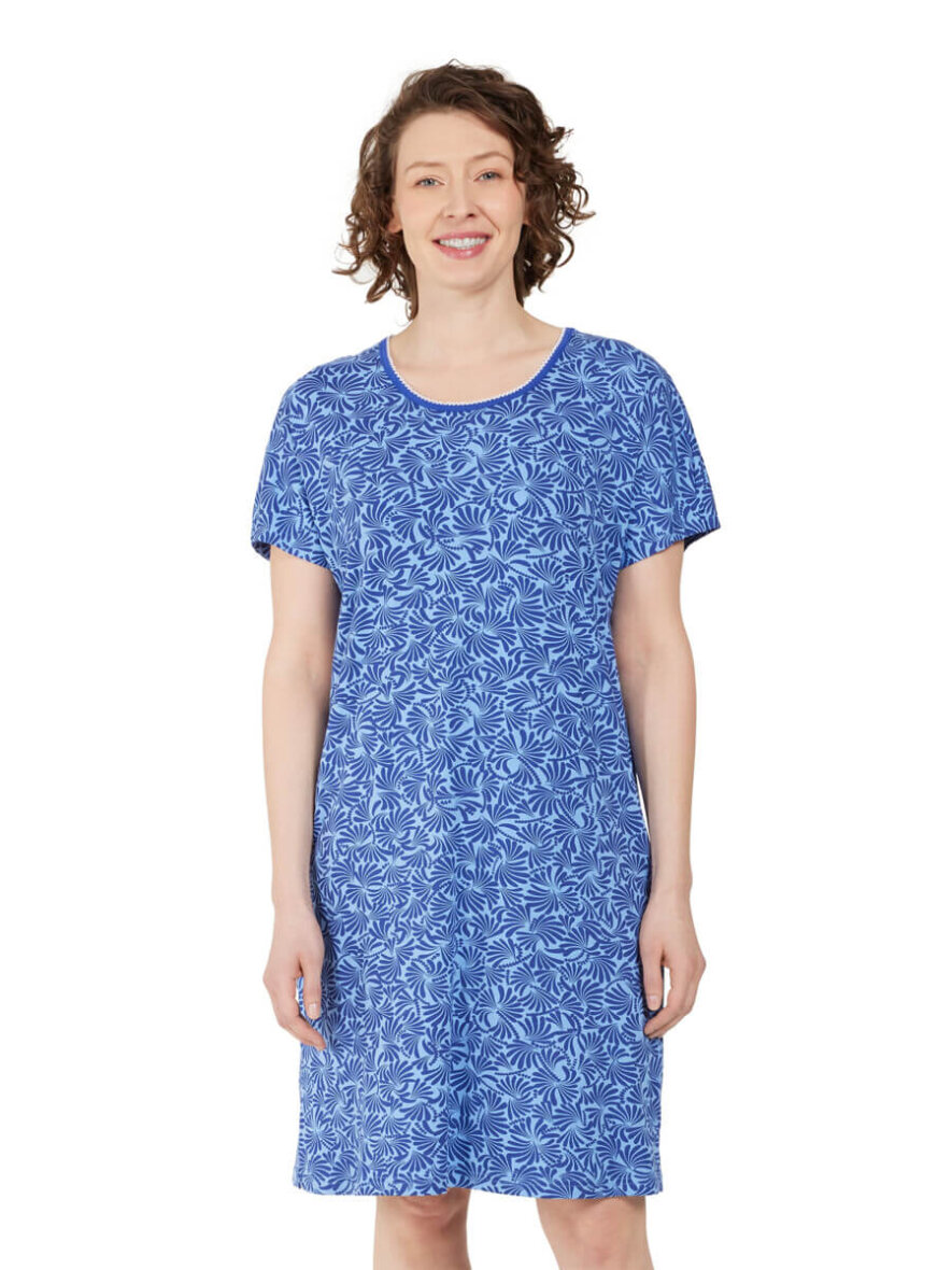 Fin natkjole fra Brandtex i et flot mønster i blå nuancer.