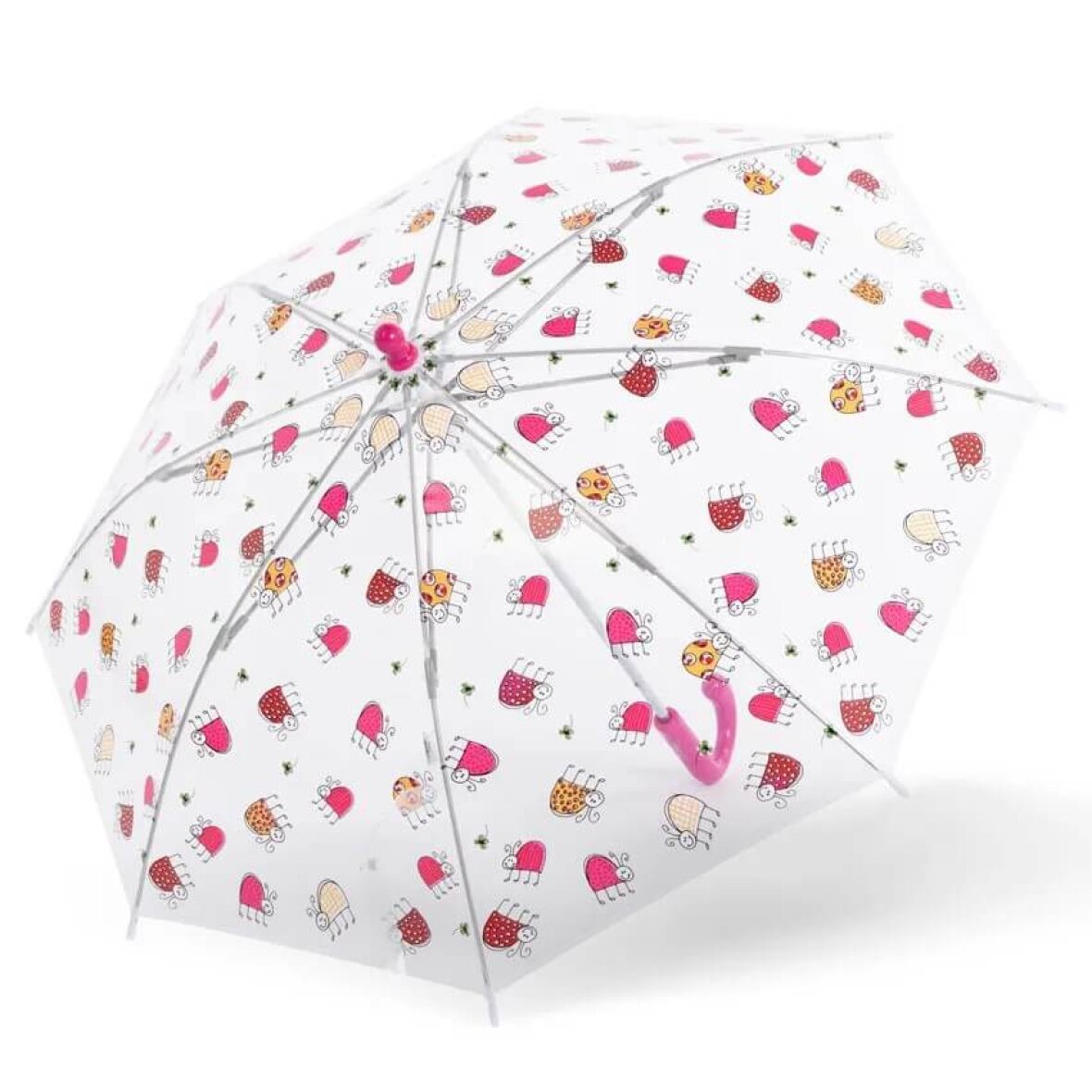 Smart og praktisk børneparaply fra Doppler. Doppler Sky børneparaply er en sjov gennemsigtig paraply med et sødt børnemotiv med mariehøns.