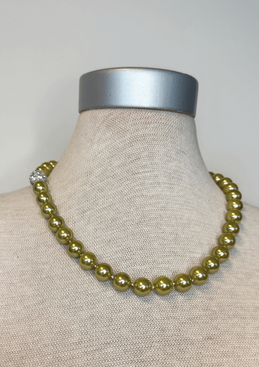 Flot og elegant halskæde fra JK Necklace. Halskæden er lavet i et støvet grønt perle design af shellperler i perlemore.