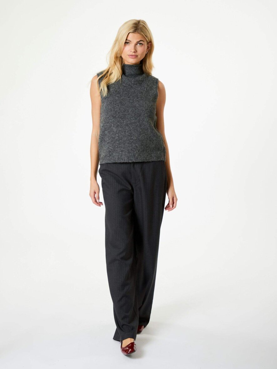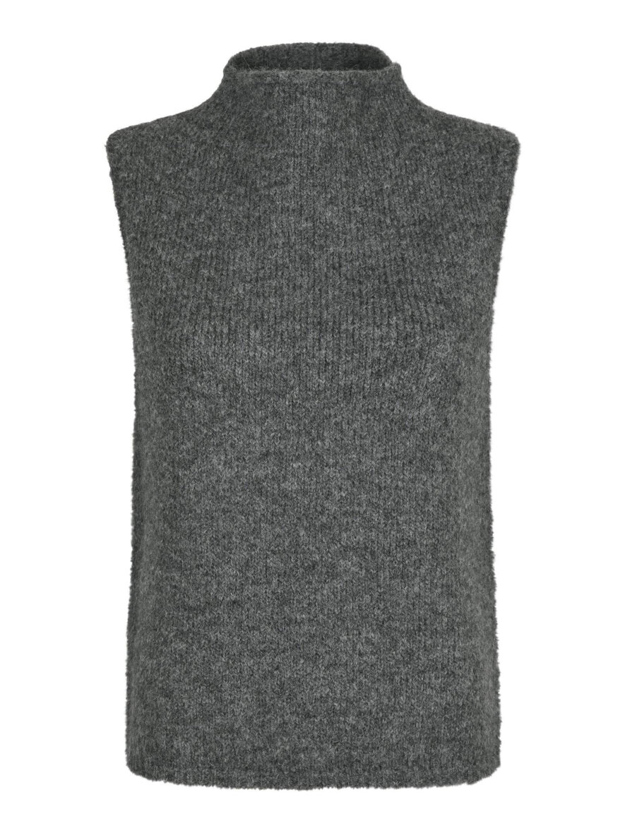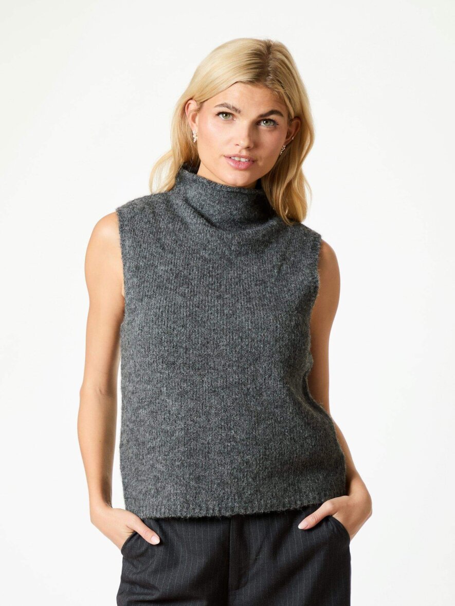Lækker mørkegrå strik vest fra Neo Noir i modellen Odelia. Vesten er lavet i et enkelt design med høj hals.