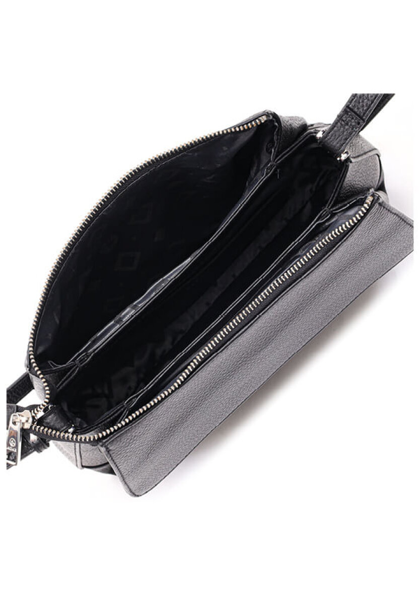 Tasken har ét stort primært rum, som lukkes ved hjælp af lynlås. Det primære rum består af tre åbne rum hvor der i det midterste er en smal lynlåslomme samt en åben læderlomme. Tasken har ydermere en lynlåslomme på bagsiden af tasken. En tote bag og en lille garantifolder medfølger. Med lang regulerbar rem . Tasken er ideel både som crossover og skuldertaske.