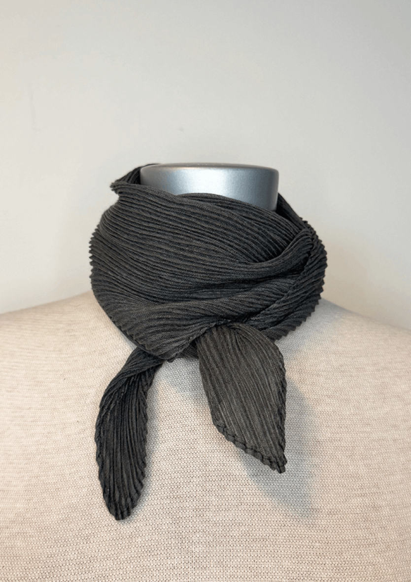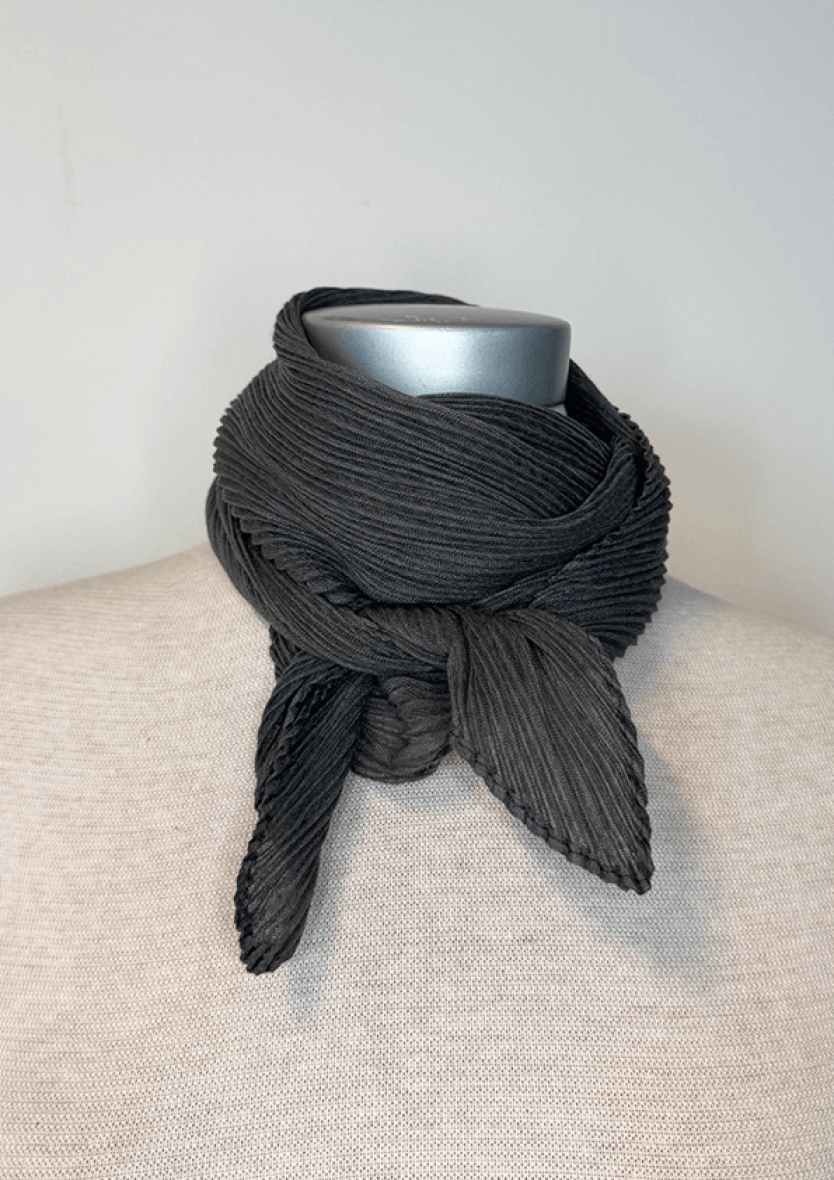 Lækkert lille tørklæde i et plisséret mørke gråt design fra JK Necklace.