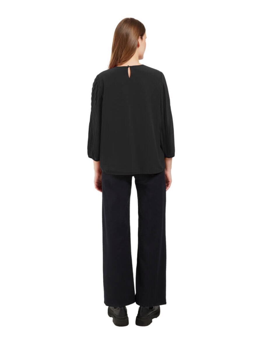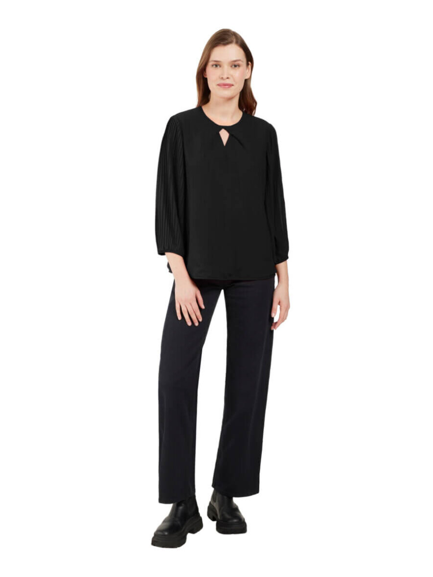 Super flot bluse fra Signature i et flot sort design med fine plissé detaljer langs ærmerne.