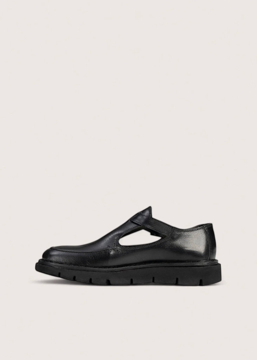 Super smart t-rem sko i sort fra Bubetti. Skoen er lavet i vegetabilsk garvet skind, der giver god komfort.