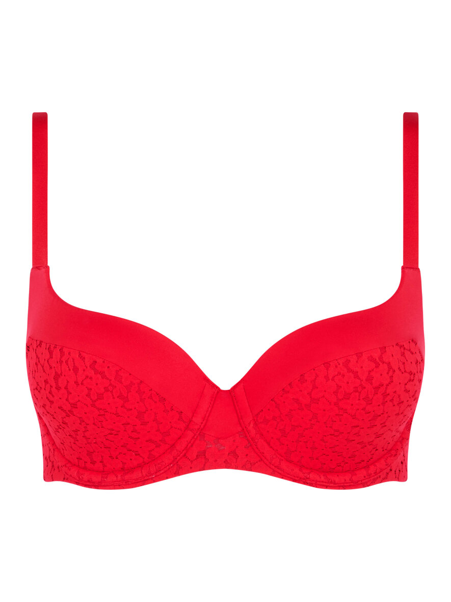 Super smuk og behagelig foret BH fra Chantelle i et farverigt rødt design.