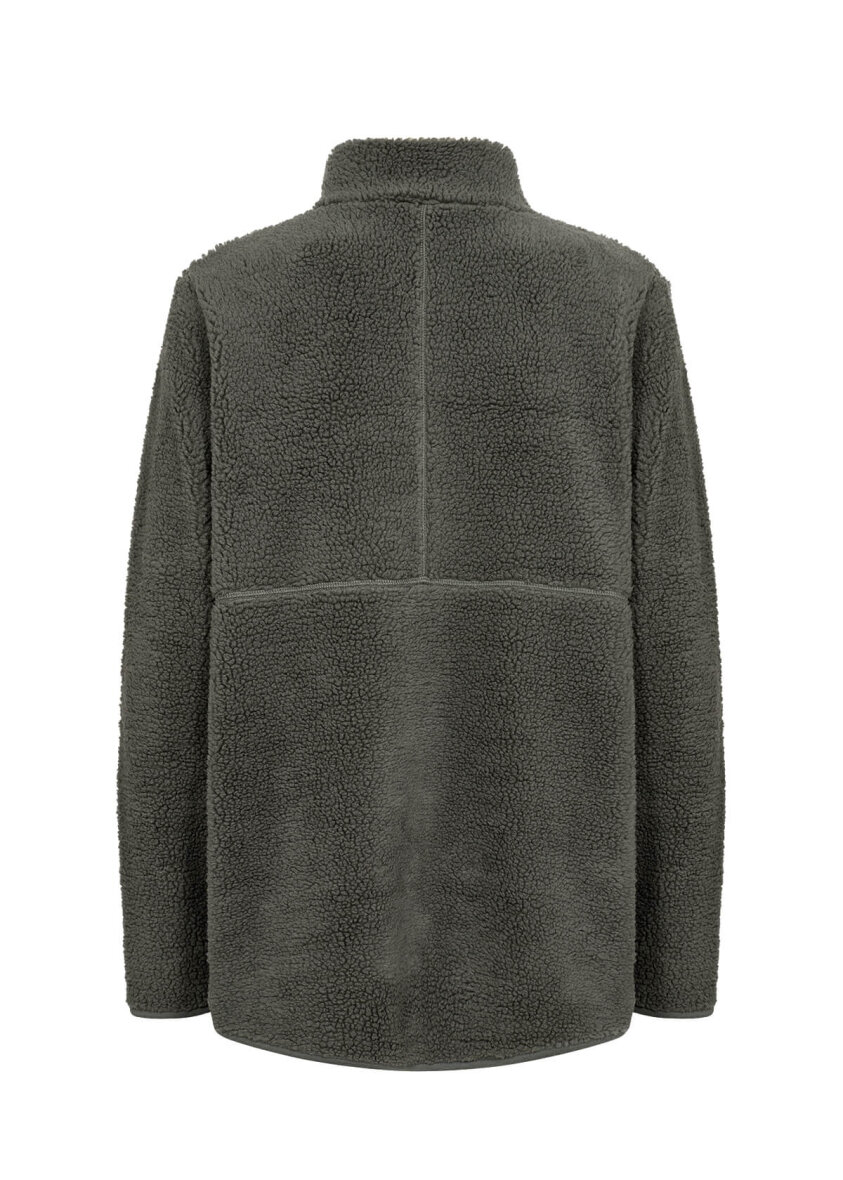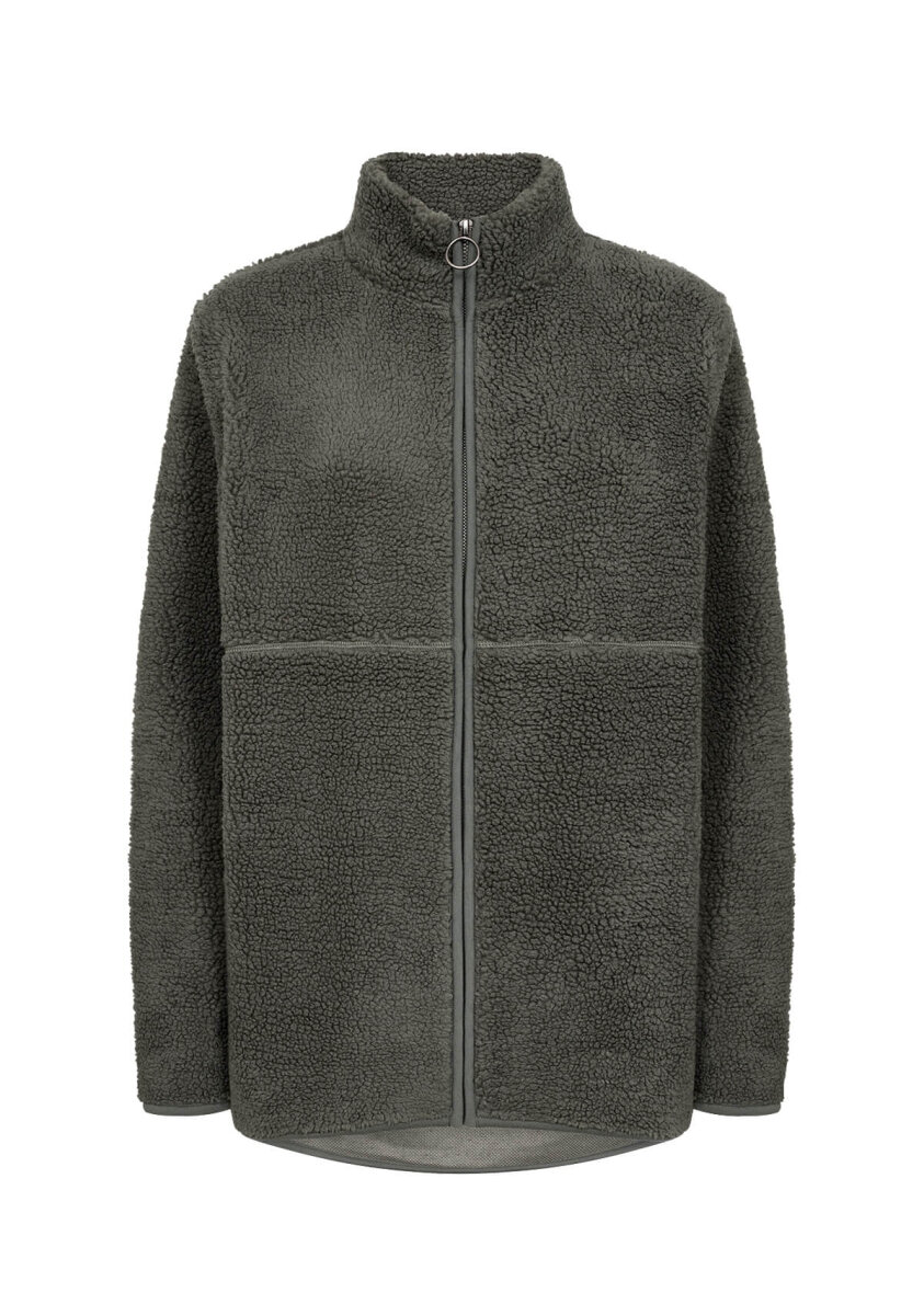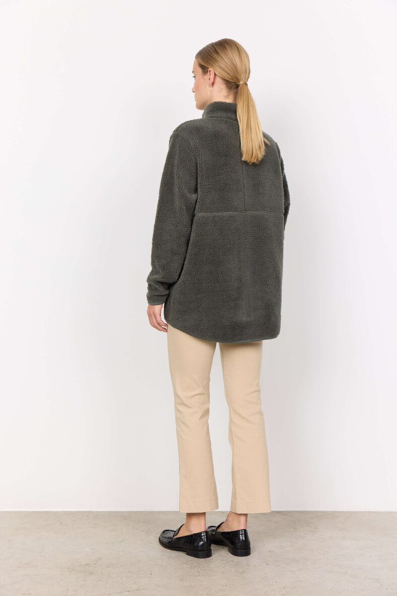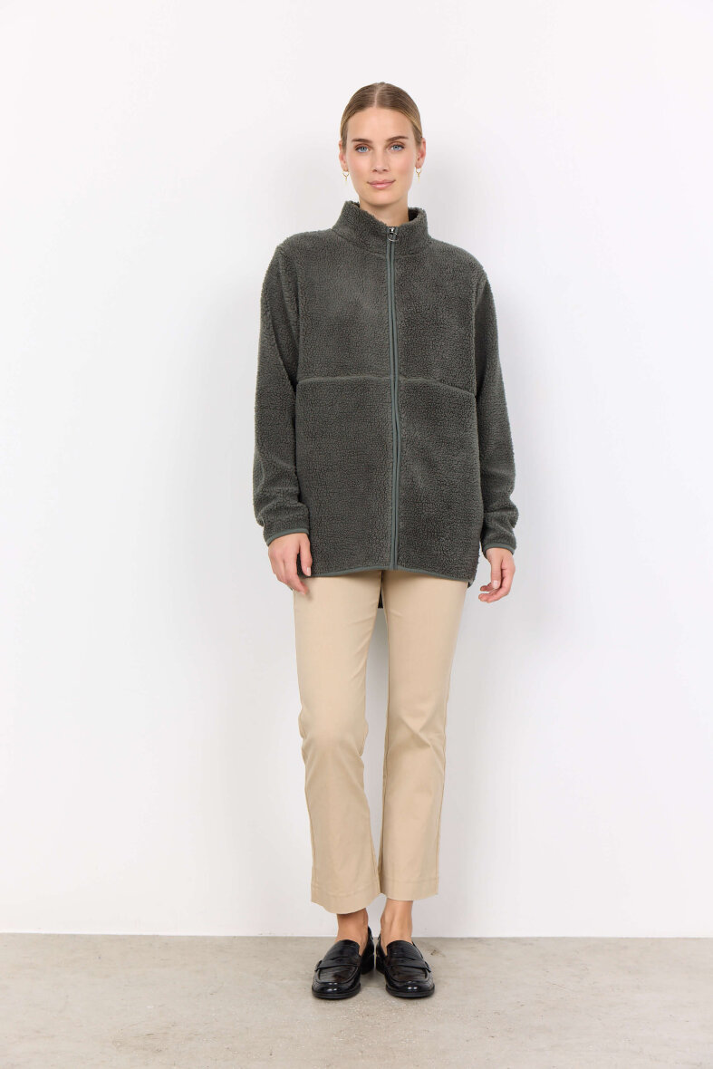 Smart og blød fleece jakke fra Soyaconcept i den moderne army grønne farve. Fleece trøjen er lavet i et blødt teddy bear design.