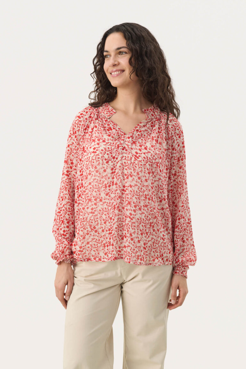 Smuk mønstret bluse fra Part Two i et smukt rødt blomster print.