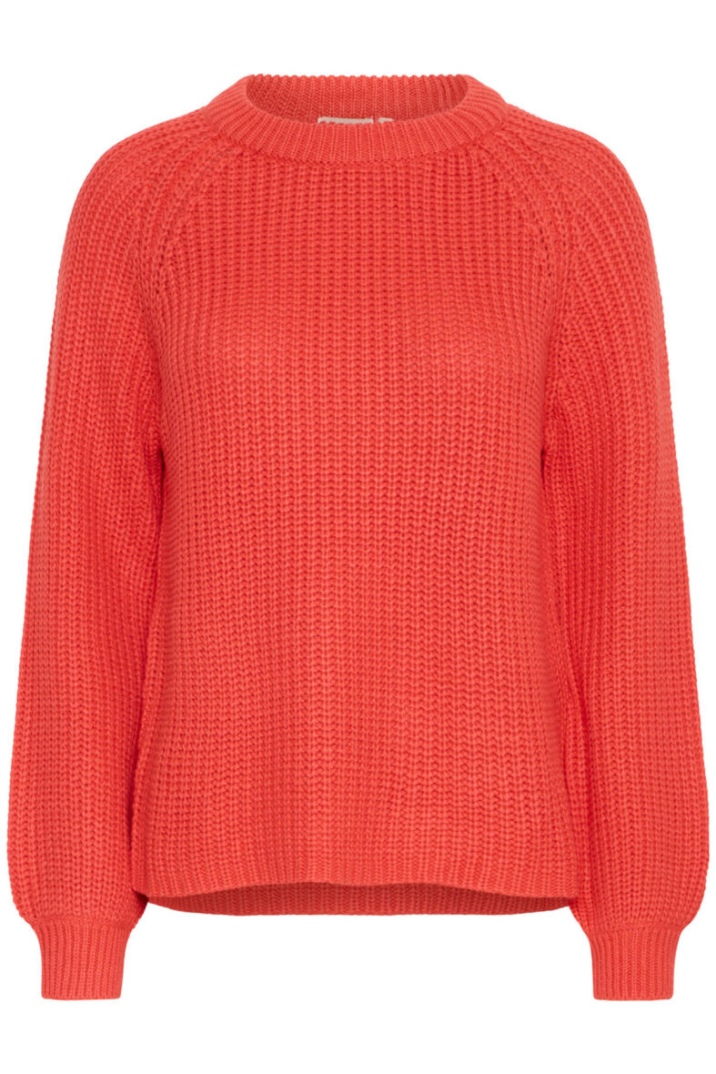 Super lækker blød strik fra Fransa i et farverigt rødt design. Blød kvalitet i et enkelt design. Striktrøjen er dejlig vamset og har en god tykkelse.