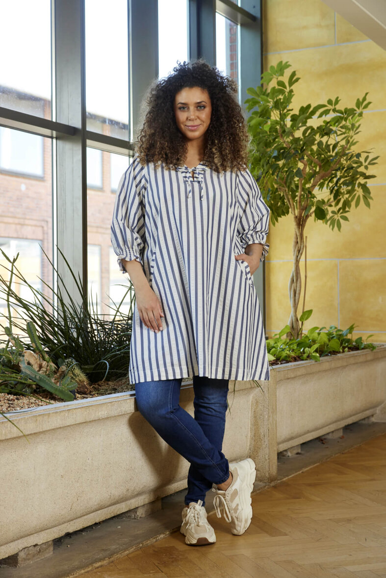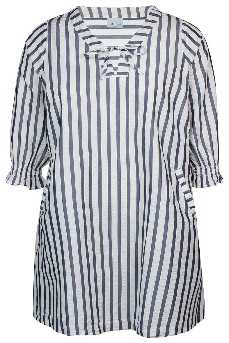 Smuk tunika fra Zhenzi i et blåt- og hvidstribet design. Tunikaen er lavet i et flot og klassisk stribet print, som passer til enhver anledning.