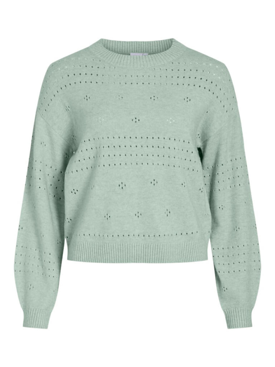 Flot of farverig striktrøje fra VILA med et fint hullet mønster. Den lysegrønne striktrøje er lavet i en skøn viskoseblanding, som gør den dejlig blød og behagelig at have på.