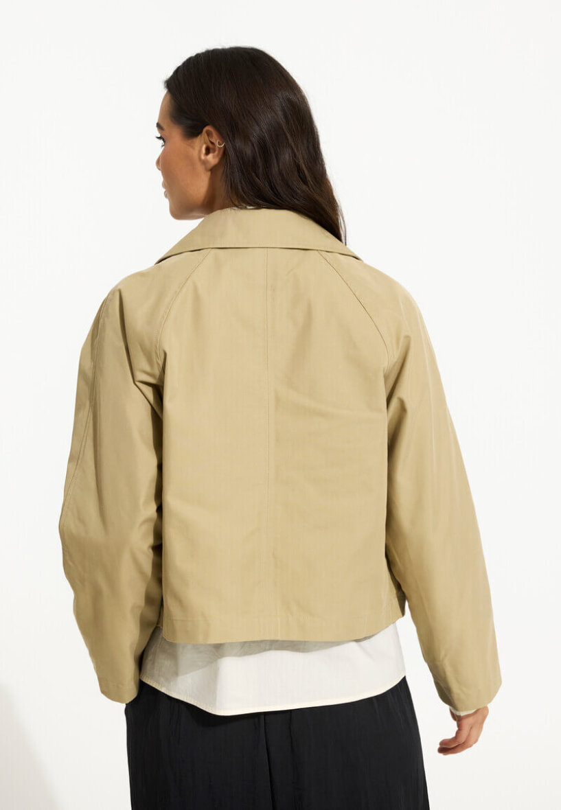 Smart kort trenchcoat fra In Front i et moderne sandfarvet look. En stilfuld og let jakke, perfekt som sommer- eller overgangsjakke.
