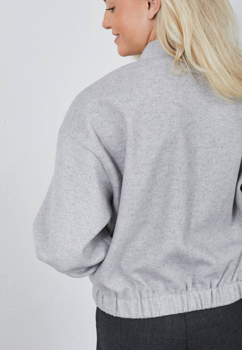 Smart bomber jakke fra Sisters Point i et gråt melange look. Vabaia bomber jakken er en smart kort jakke som kan styles udover mange forskellige outfits og skabe et smart look.