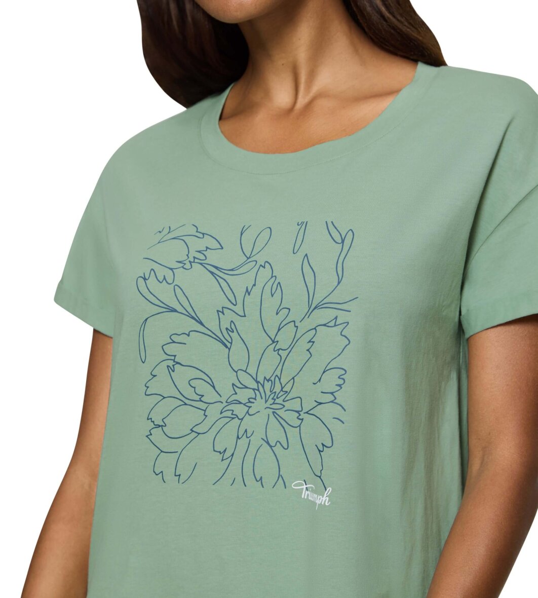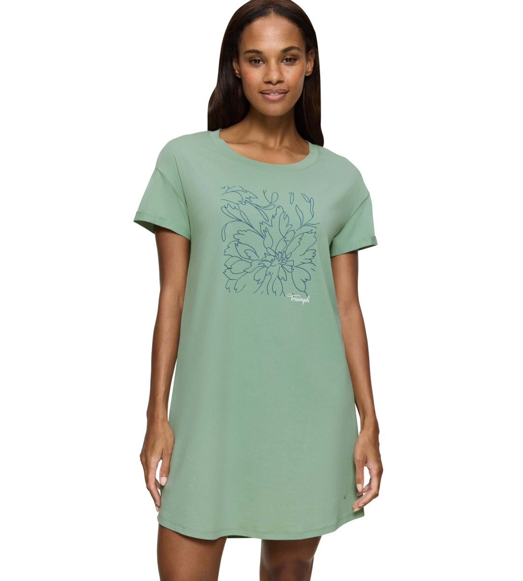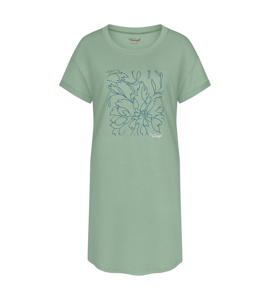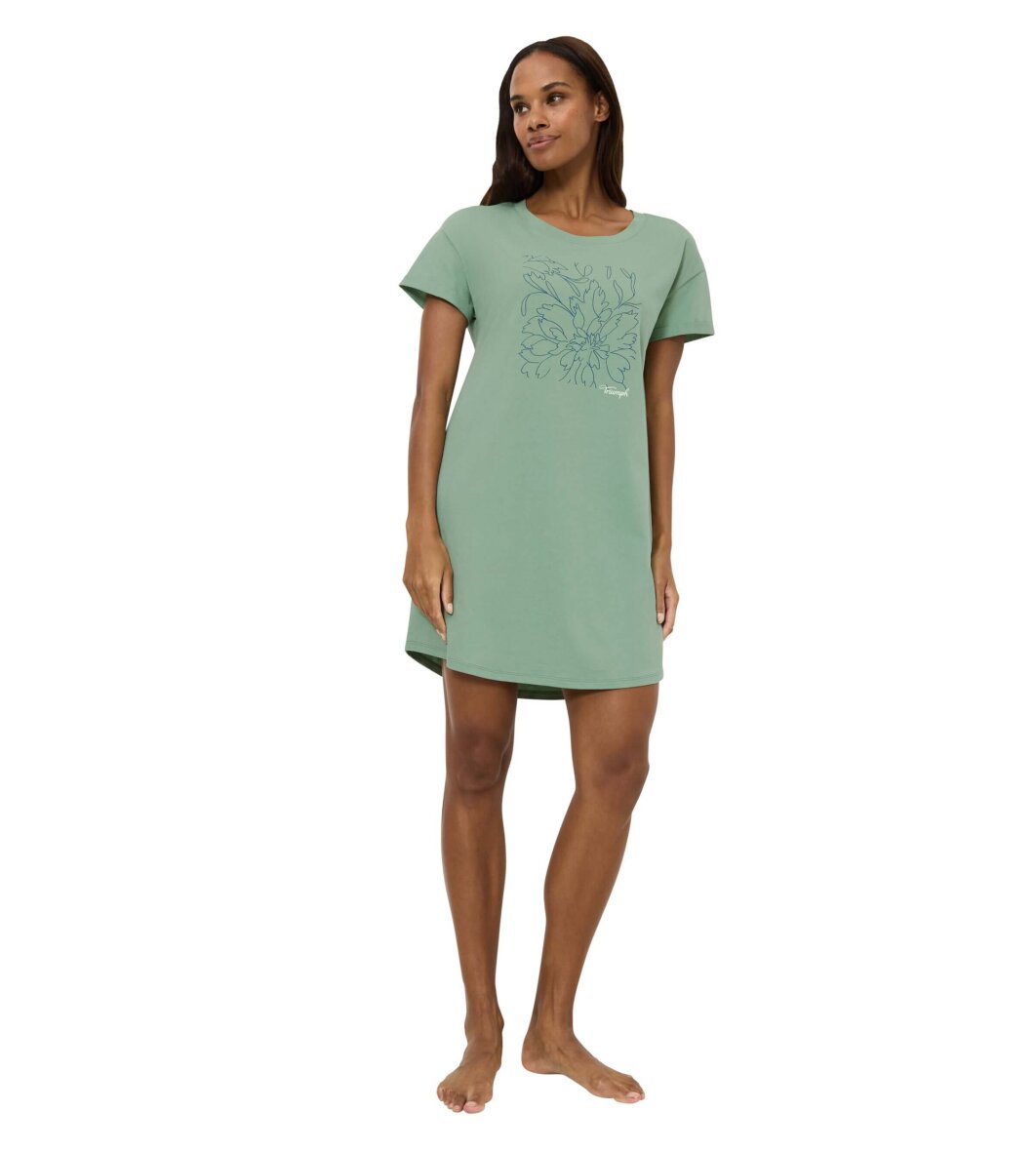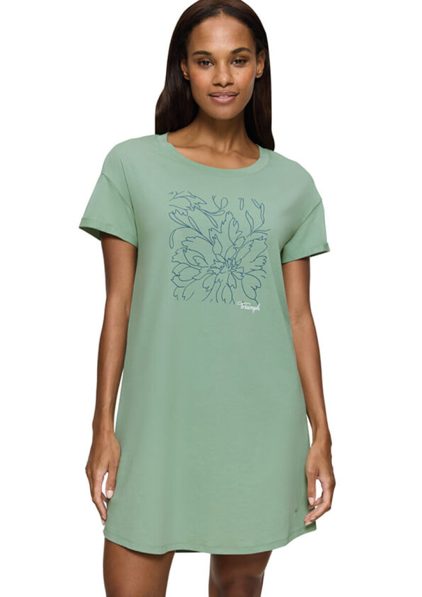 Lysegrøn natkjole fra Triumph med blåt blomster tryk på brystet.