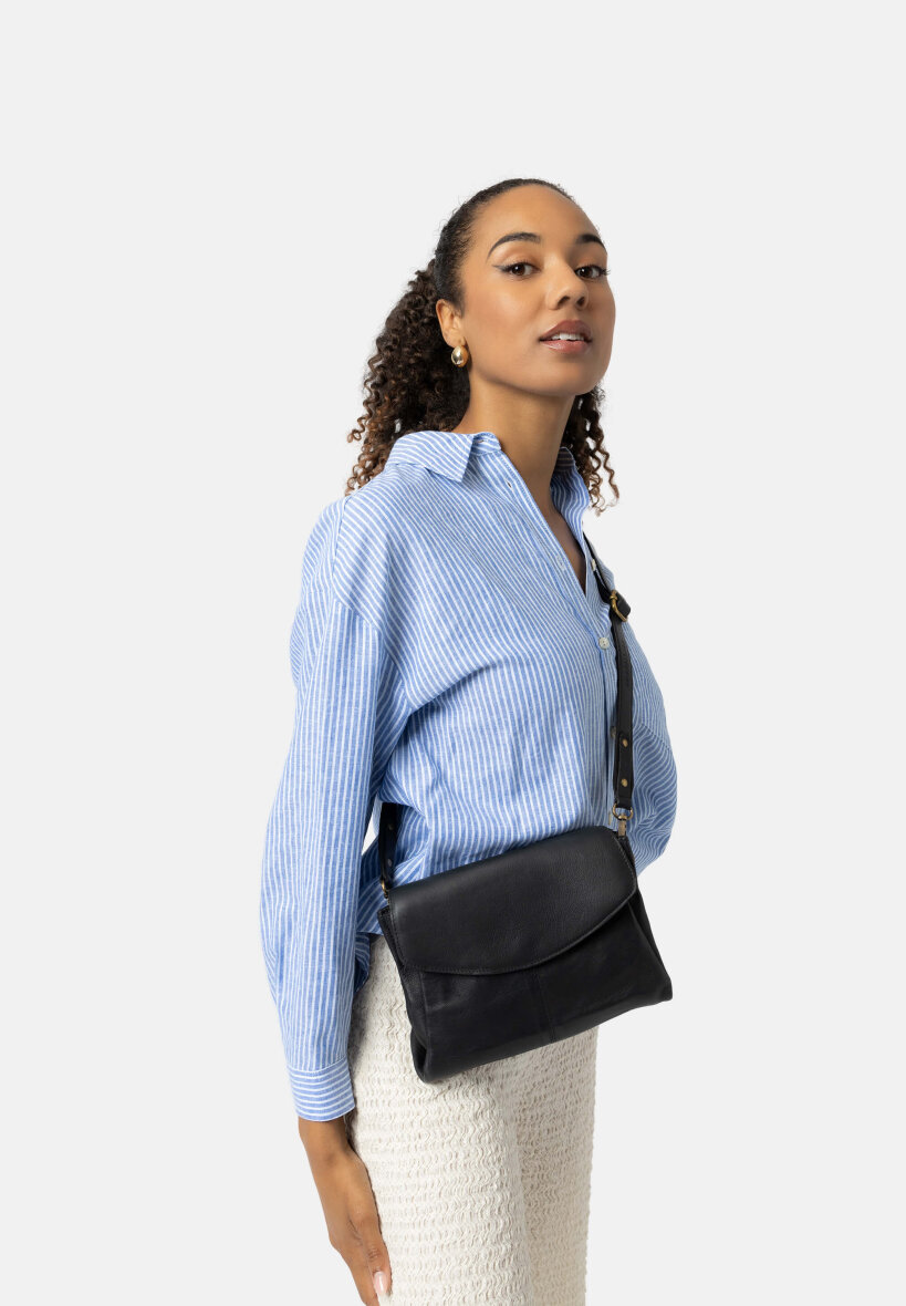 Smart skuldetaske fra Re:Designed i modellen Liri Medium Tasken kan bruges både som skuldertaske og crossover taske og er lavet i et klassisk sort design.