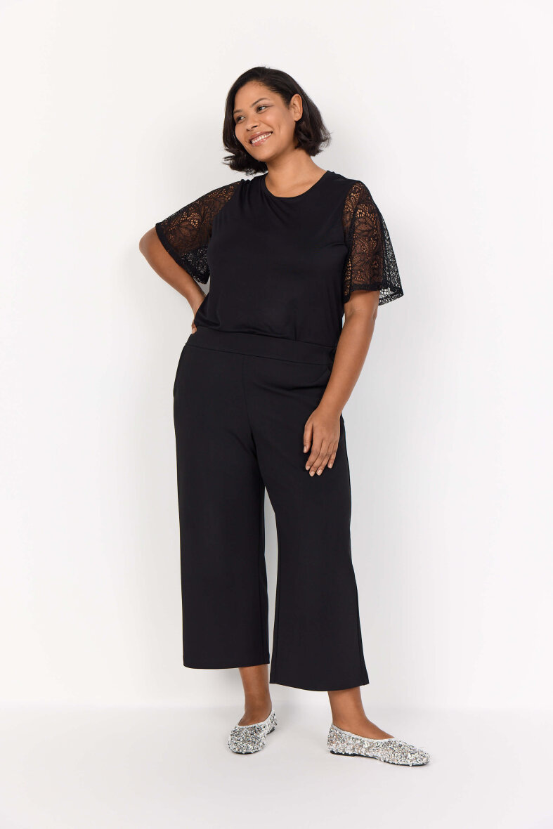 Bukserne er lavet i et kort design med vidde i benene, som giver en flot silhuet. Bukserne er lavet i en blød og behagelig kvalitet med stretch, som gør dem både komfortable og flatterende.