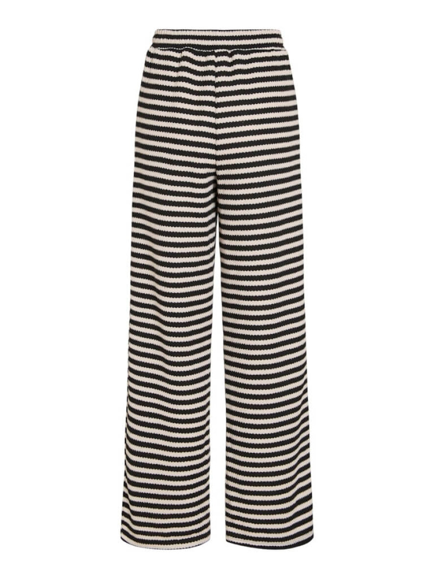 Smarte strik bukser fra Vila i et afslappet design med brede bukseben. Bukserne er lavet i et sort/hvid stribet design.