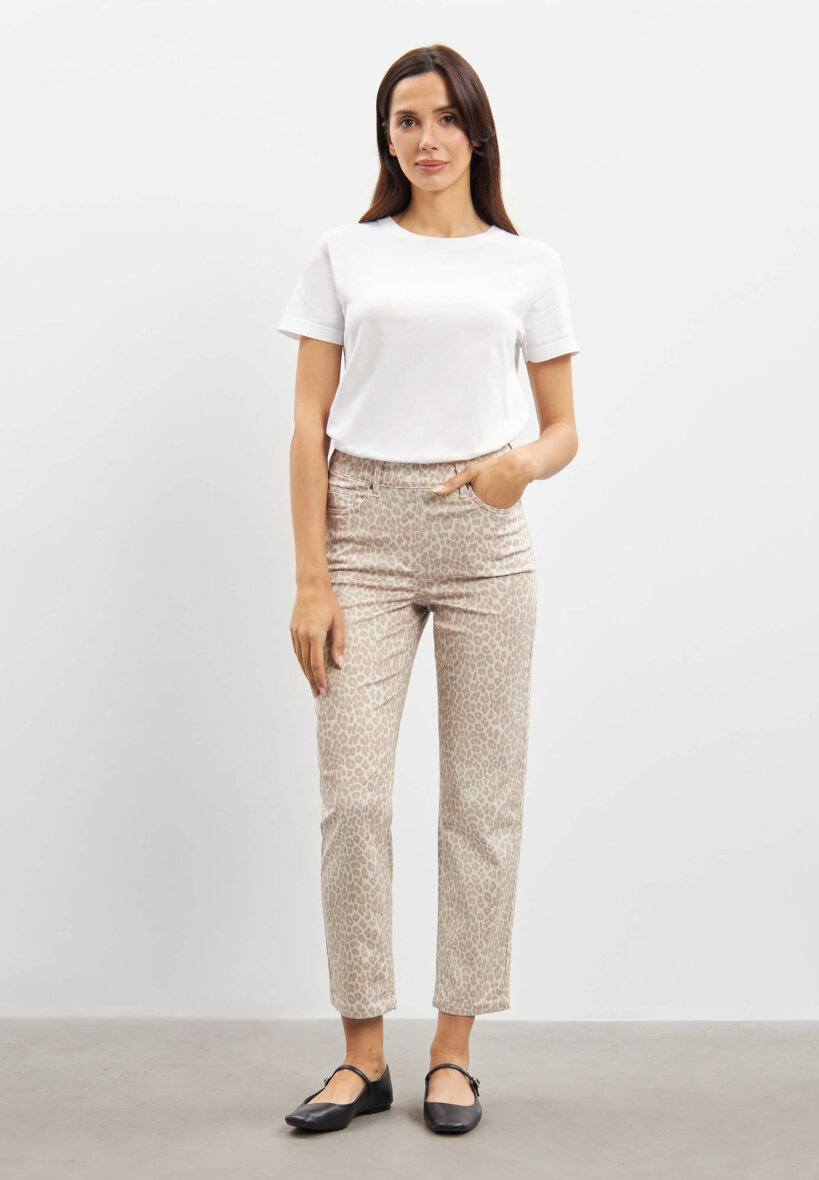 Smarte Laurie bukser i modellen Hannah i et moderne lyst leopard design.