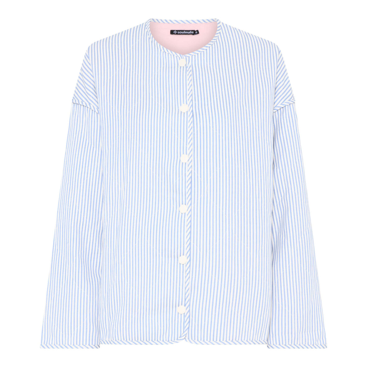 Denne smarte quiltet jakke fra Soulmate er et must-have til foråret. Jakken er lavet i et trendy quiltet design i en et lyseblåt og hvidt stribet design med lyserødt foer.