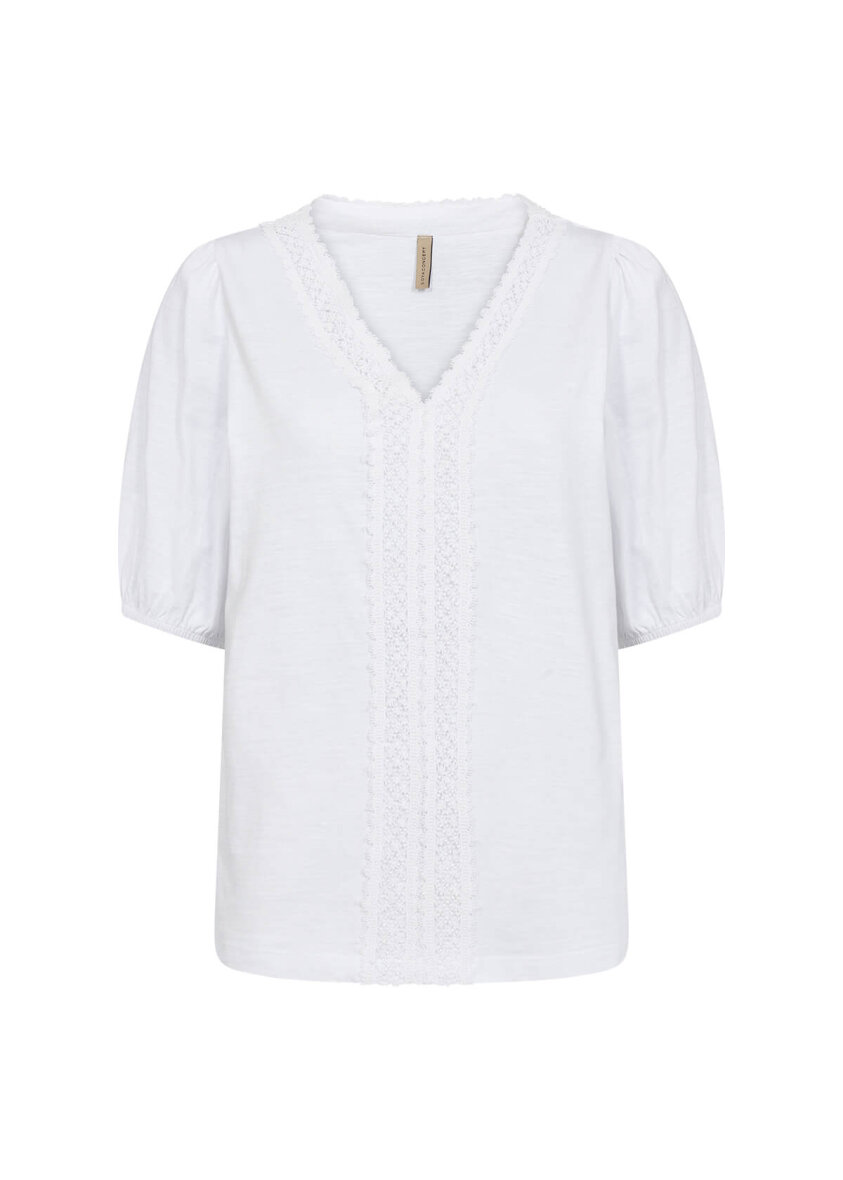 Flot og enkel t-shirt fra Soyaconcept i et hvidt design med fine blonde detaljer.