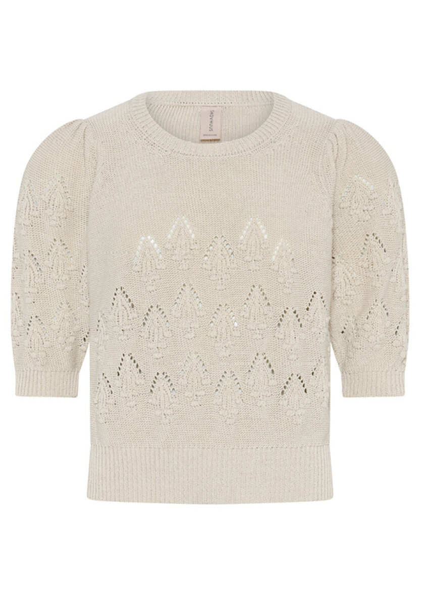 Flot strikket t-shirt fra Skovhuus i et enkelt creme hvidt design i et smukt vævet mønster med huldesign.