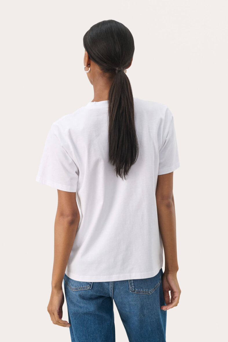 Klassisk hvid t-shirt i en behagelig pasform. Style evt. til et par blå jeans for et smart hverdags look.