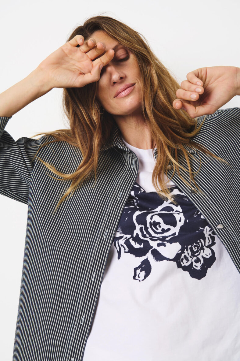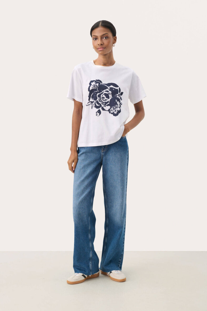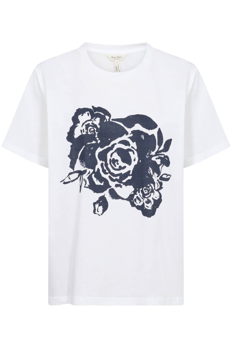 Fin og enkel t-shirt fra Part Two i et hvidt design med et flot navy rose print på fronten. Med denne basis t-shirt med print har du et hav af stylingsmuligheder.