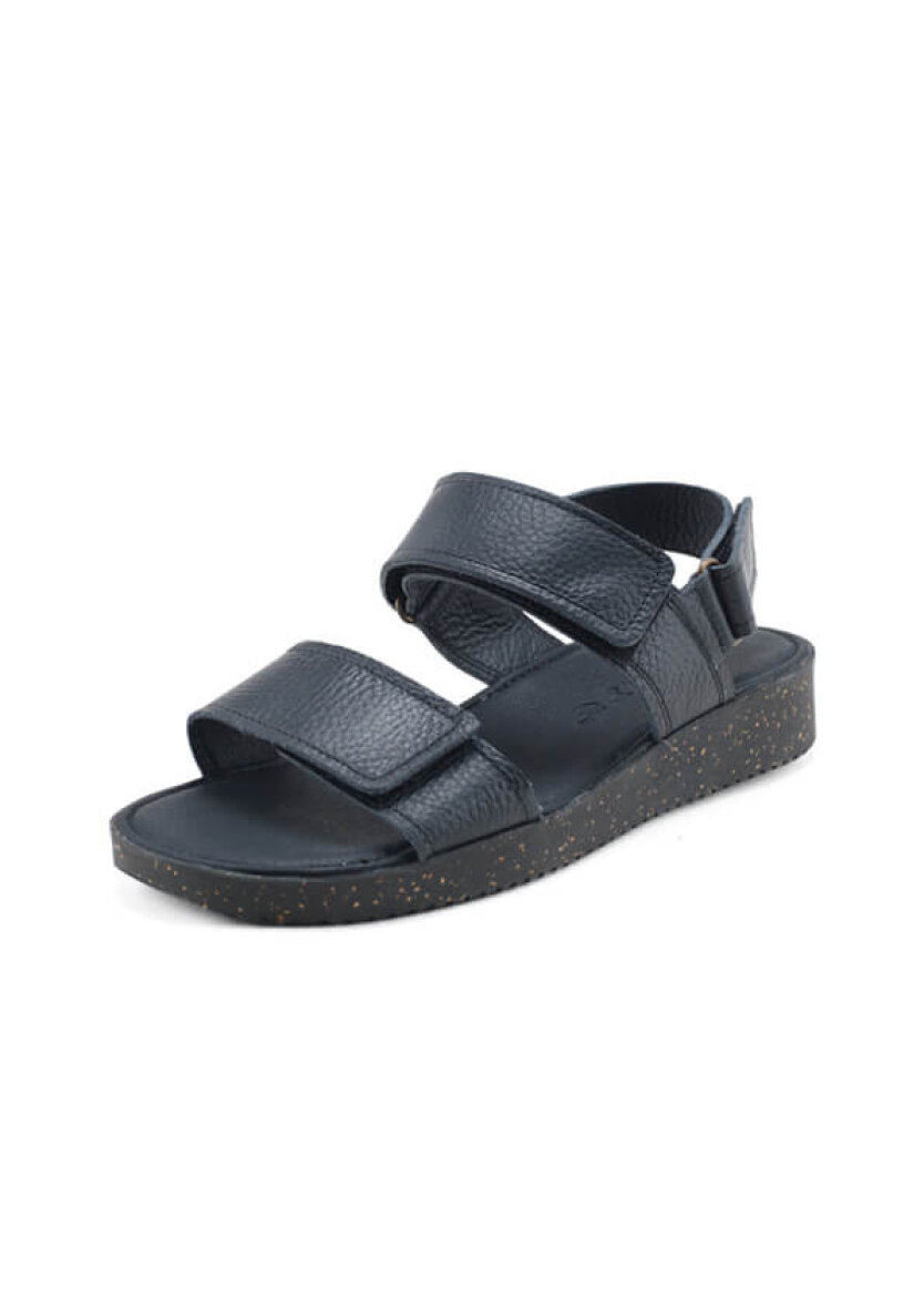 Den sorte sandal er med en blød ergonomisk ydersål lavet af naturgummi, som sikrer en god gangoplevelse og stabilitet. Sandalen er lavet i bæredygtigt materiale.