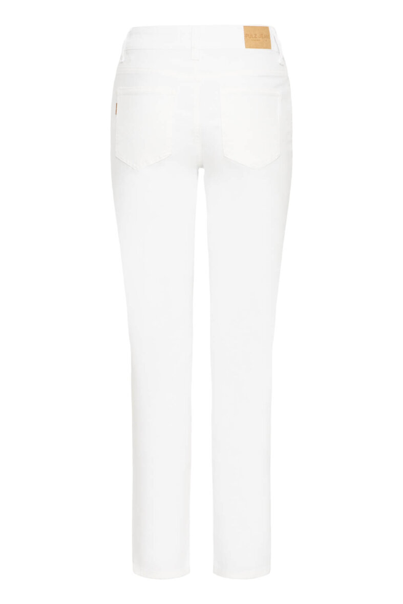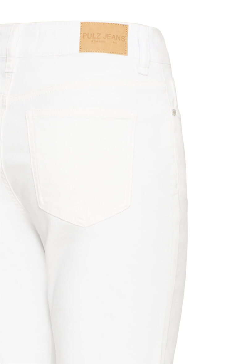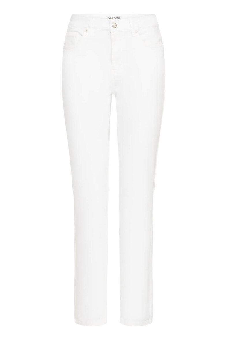 Smarte hvide jeans i et klassisk design fra Pulz Jeans i modellen Emma. Emma buksen er en højtaljet buks med lige ben.