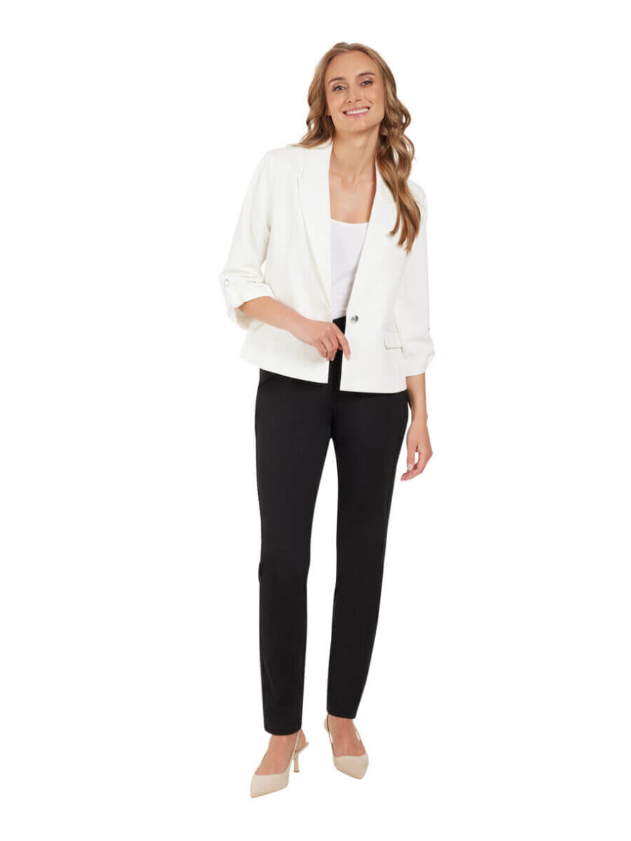 Elegant hvid blazer fra Signature. Blazeren er lavet i et klassisk design med krave og flot revers, som lukkes med en sølvfarvet knap foran.