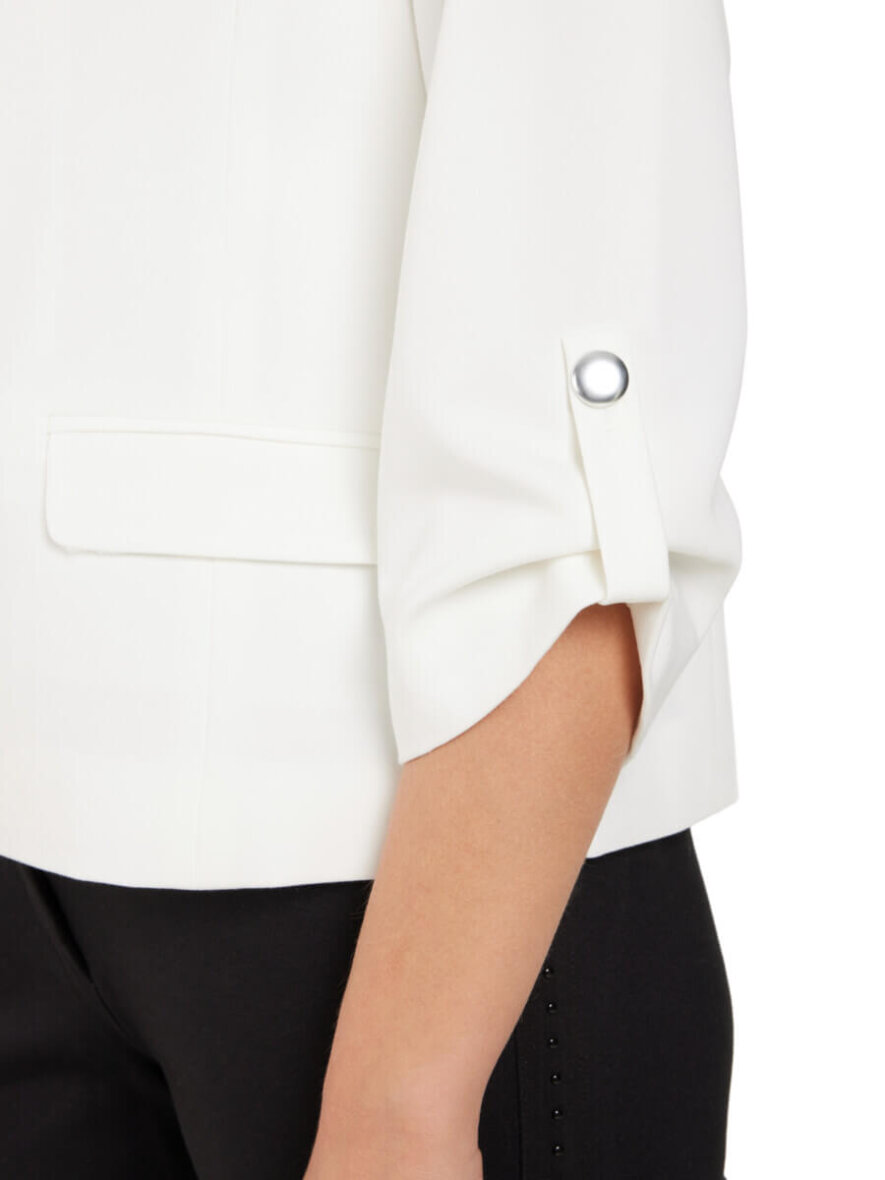 Blazeren er med to lommer med klap foran samt 3/4 ærmer med mulighed for opsmøg. Blazeren er lavet i et dejlig blødt materiale, som gør at den er yderst behagelig at have på.