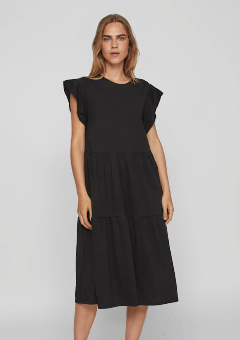 Super sød mellemlang kjole fra VILA. Den sorte kjole er designet i et enkelt og feminint design.