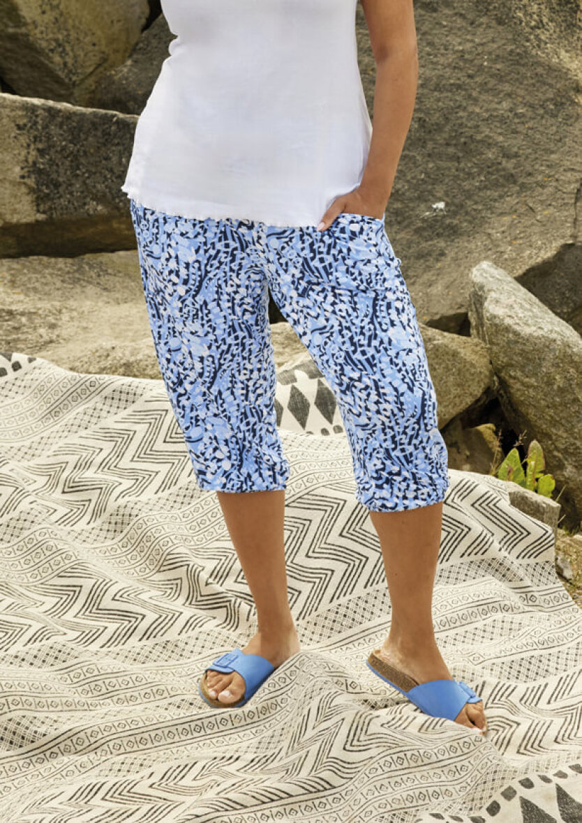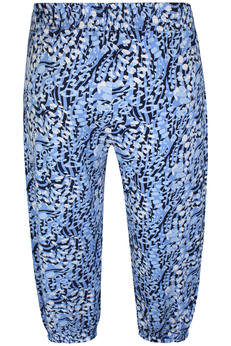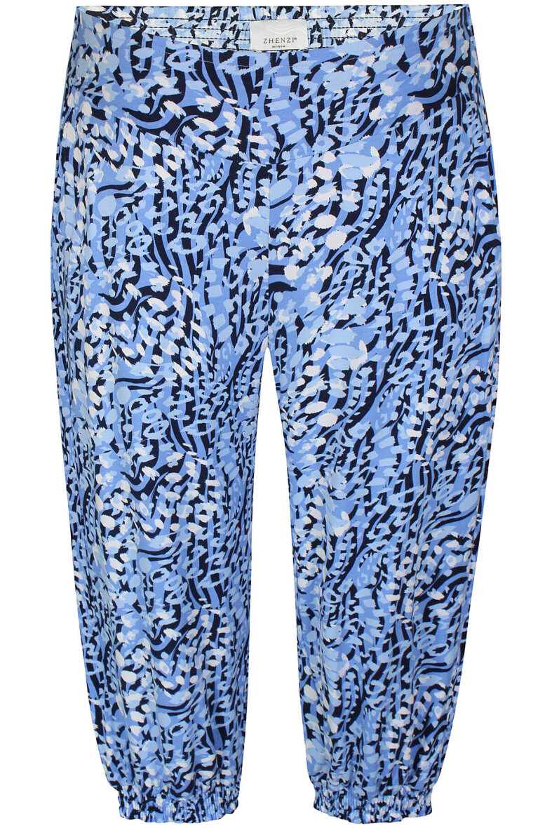 Farverig stump buks fra Zhenzi i et komfortabelt design. Buksen er lavet i et flot mønster i blå nuancer.