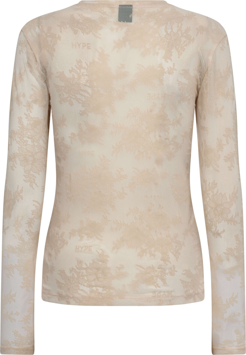 Den fineste lyse sandfarvede mesh bluse fra Hype The Detail med feminine blomster blonder samt "HYPE" skrift.