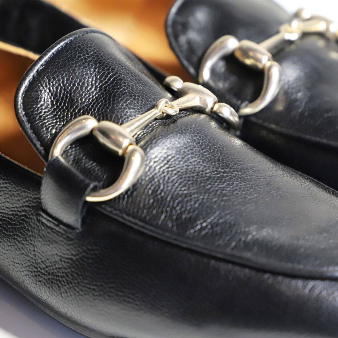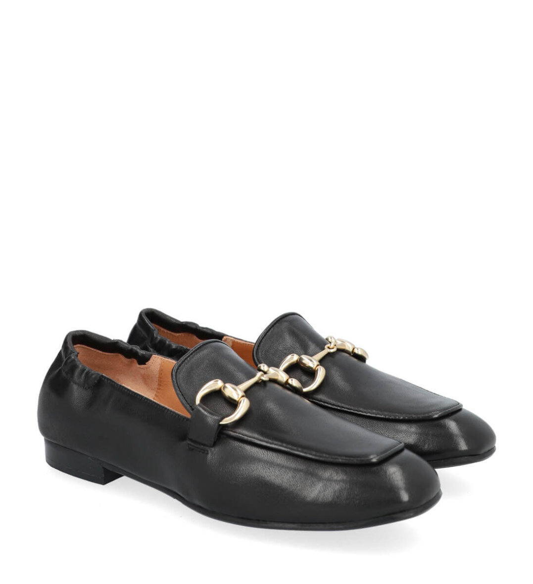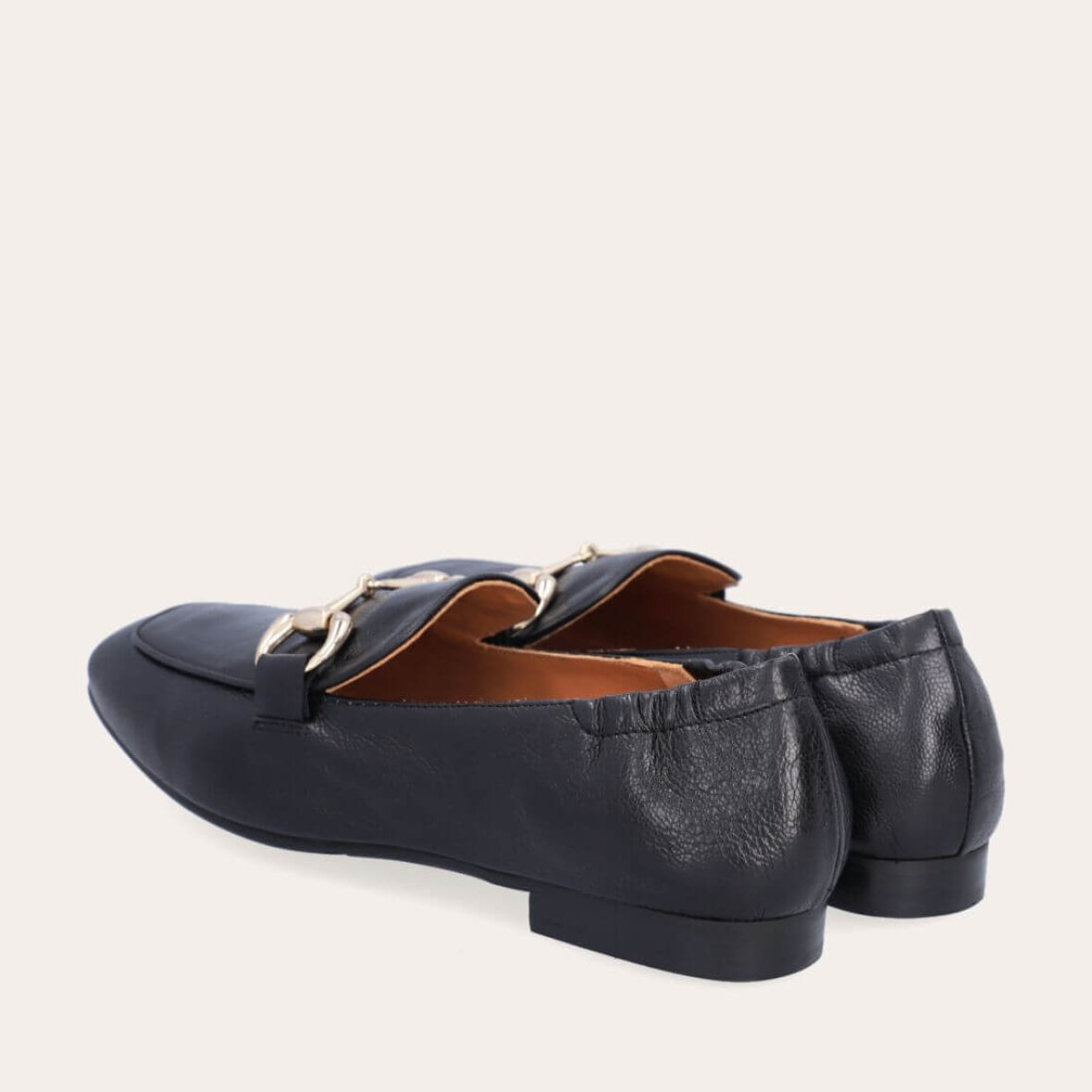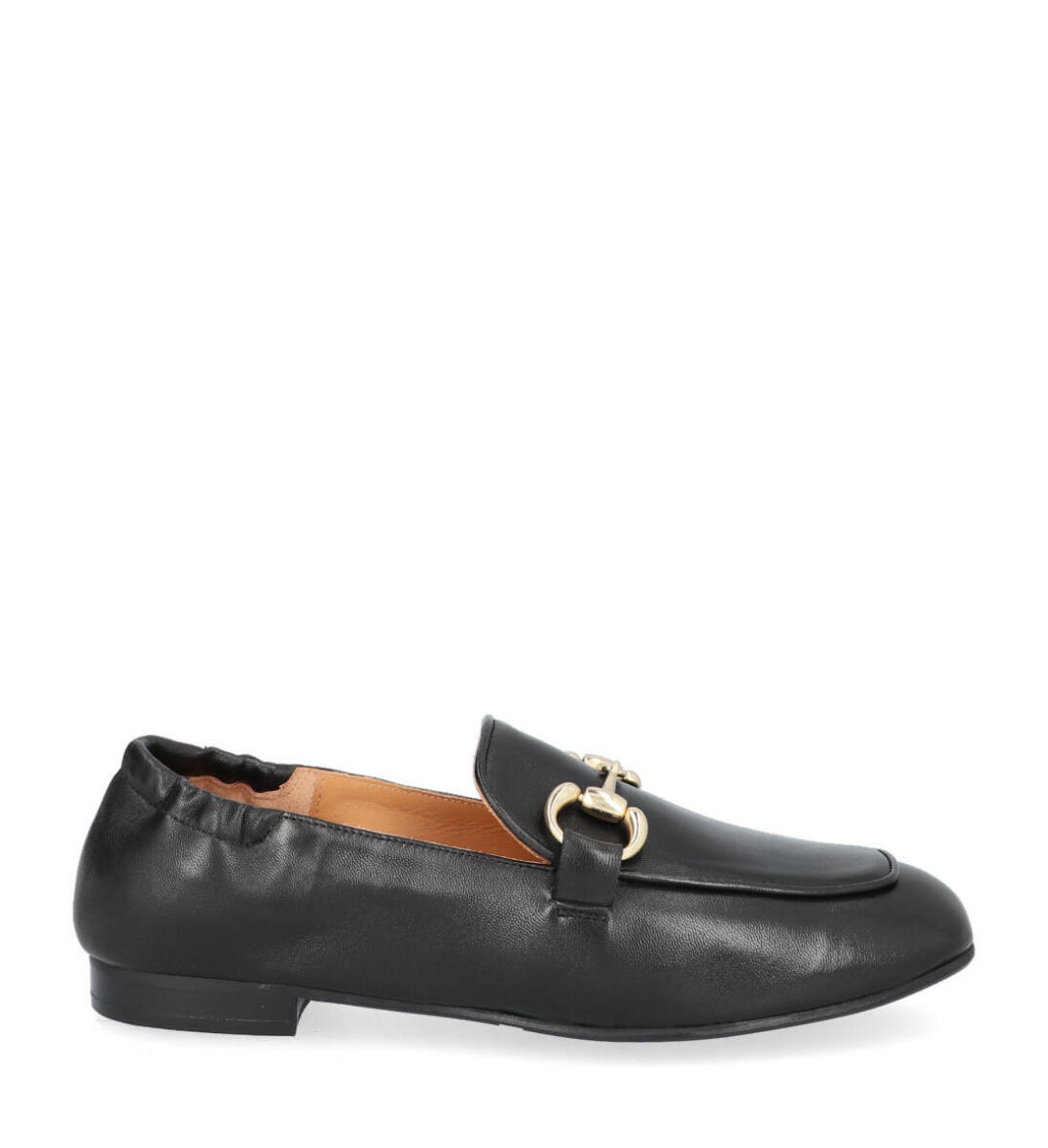 Lækker håndlavet sort loafers fra Billi bi. Skoen er udført i sort glat skind med en flot og dekorativ guld spænde over forfoden.
