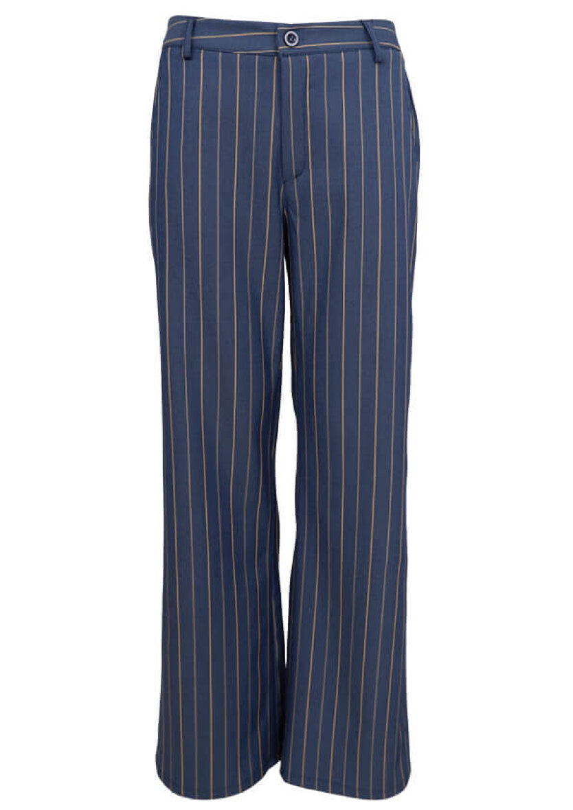 Elegante skræddersyede bukser i et mørkeblåt design med camel striber fra Black Colour.