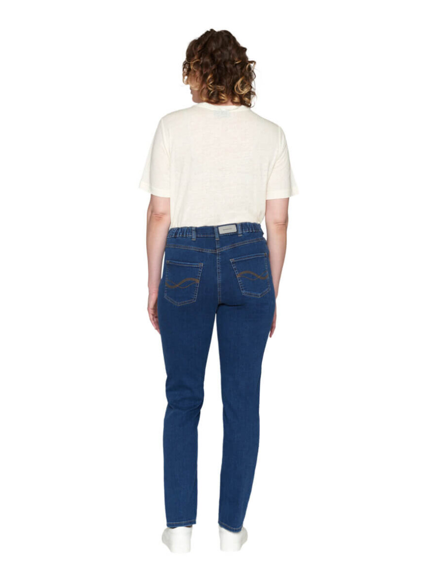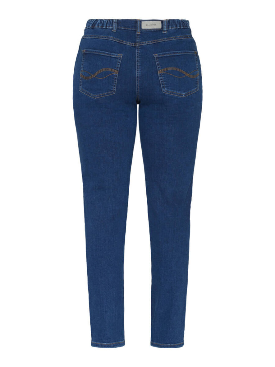 Komfortable og klassiske blå jeans fra Brandtex i modellen Elisabeth. Elisabeth buksen er lavet i et curvy fit med lige ben og høj talje med elastik i siderne.
