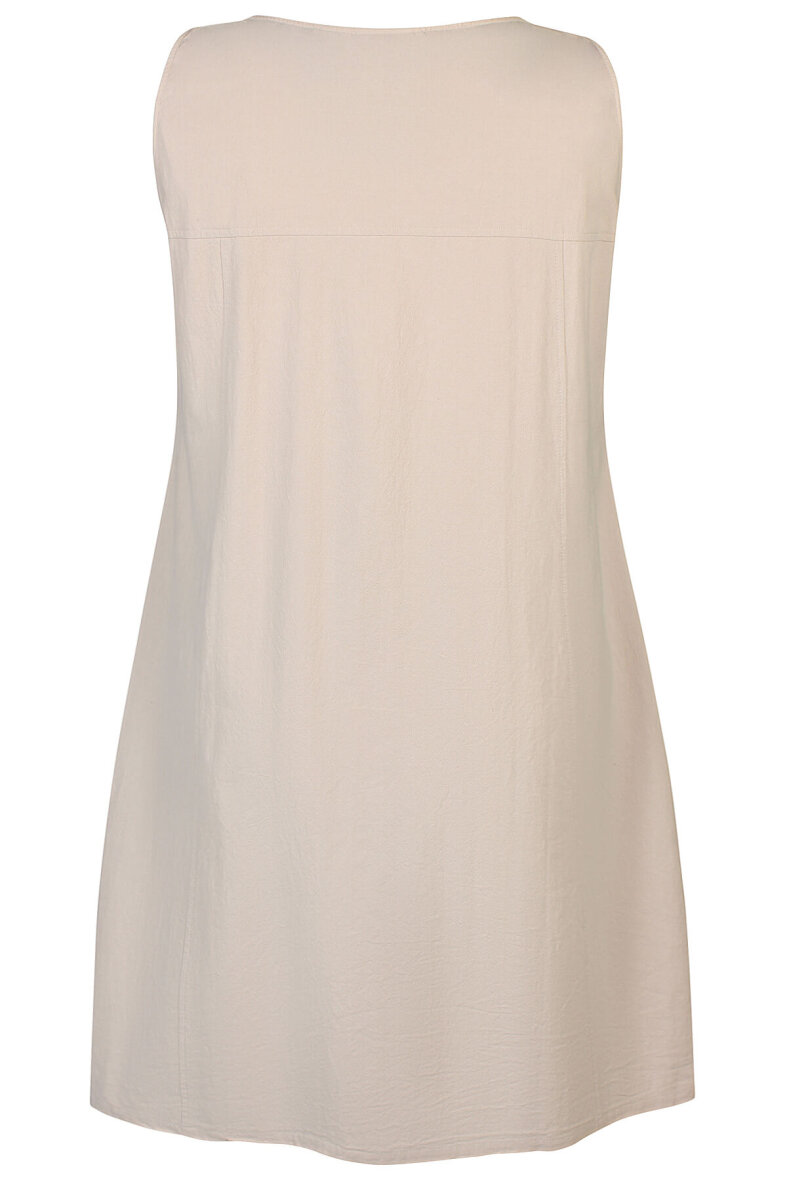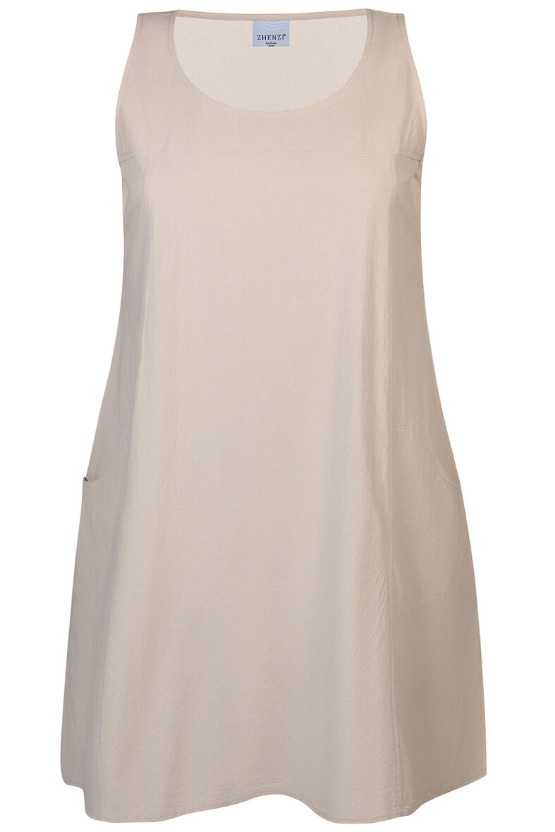 Smuk sommerkjole i plus size fra Zhenzi i et enkelt sandfarvet design.