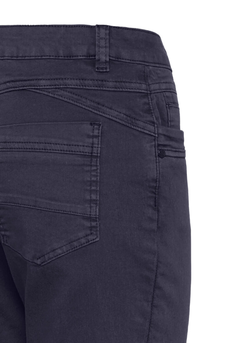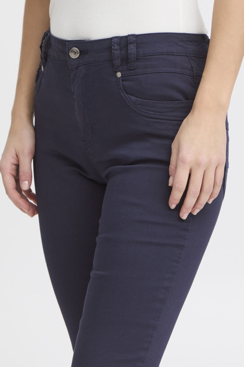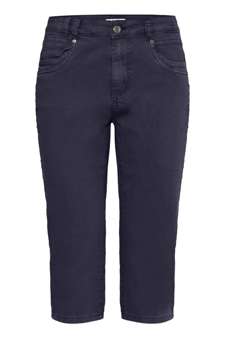Smarte højtaljede Capri bukser fra PULZ JEANS i modellen Rosita i et klassisk mørkeblåt design.