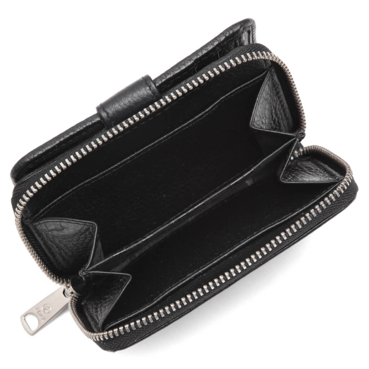 Lille og praktisk dame pung i modellen Aisa fra ADAX. Pungen er lavet i en sort 100% kalveskinds kvalitet.