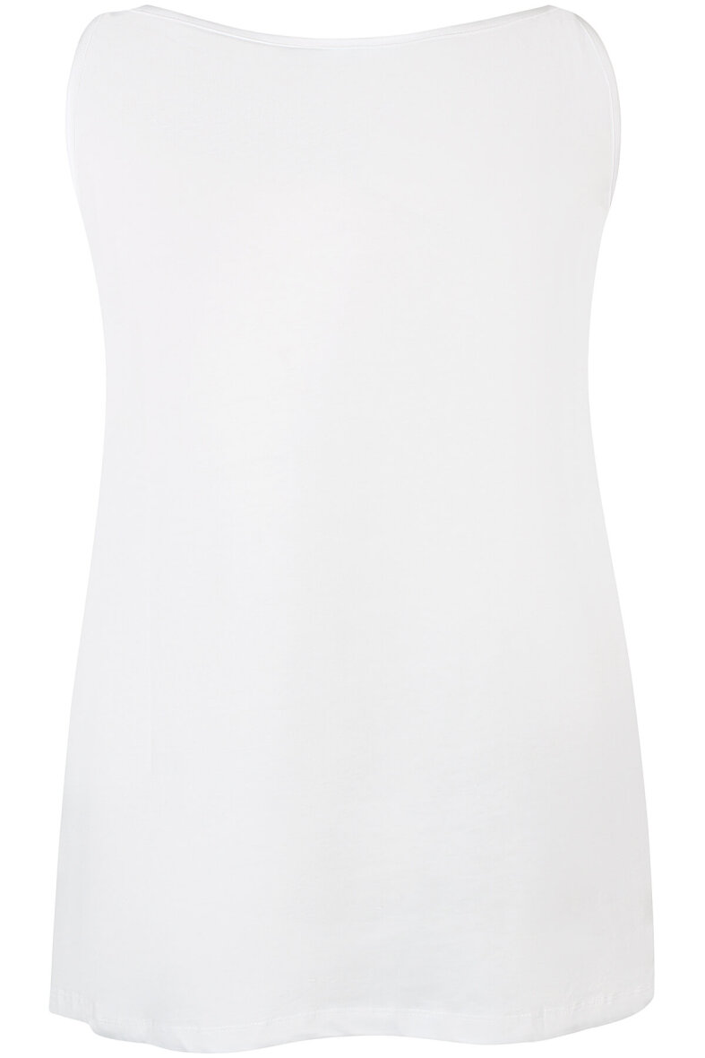 Den hvide top er lavet med rund hals og stropper. Behagelig pasform i en skøn kvalitet i 100% bomuld.
