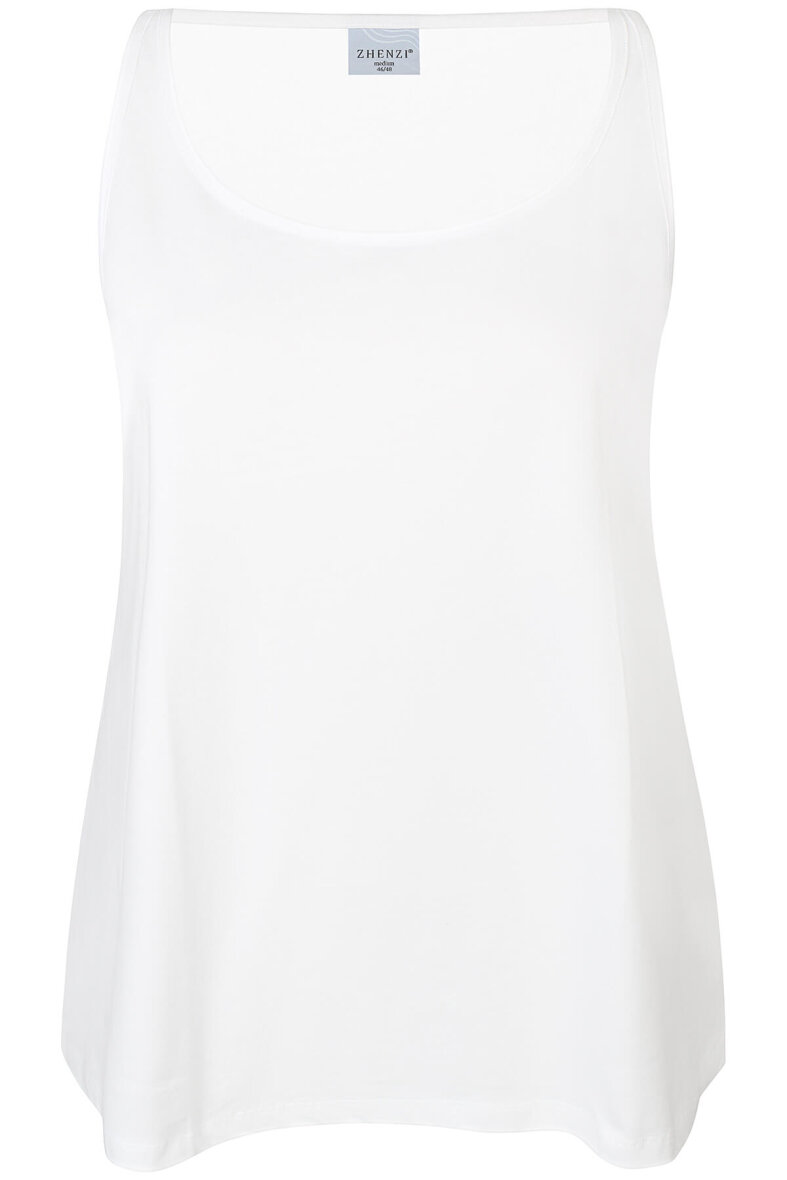 Denne enkel hvide top gør sig godt i enhver basisgarderoben. Toppen kan evt. styles som undertrøje eller for sig selv til en sød nederdel eller anden underdel. Se i øvrigt vores store udvalg af underdele i plus size!