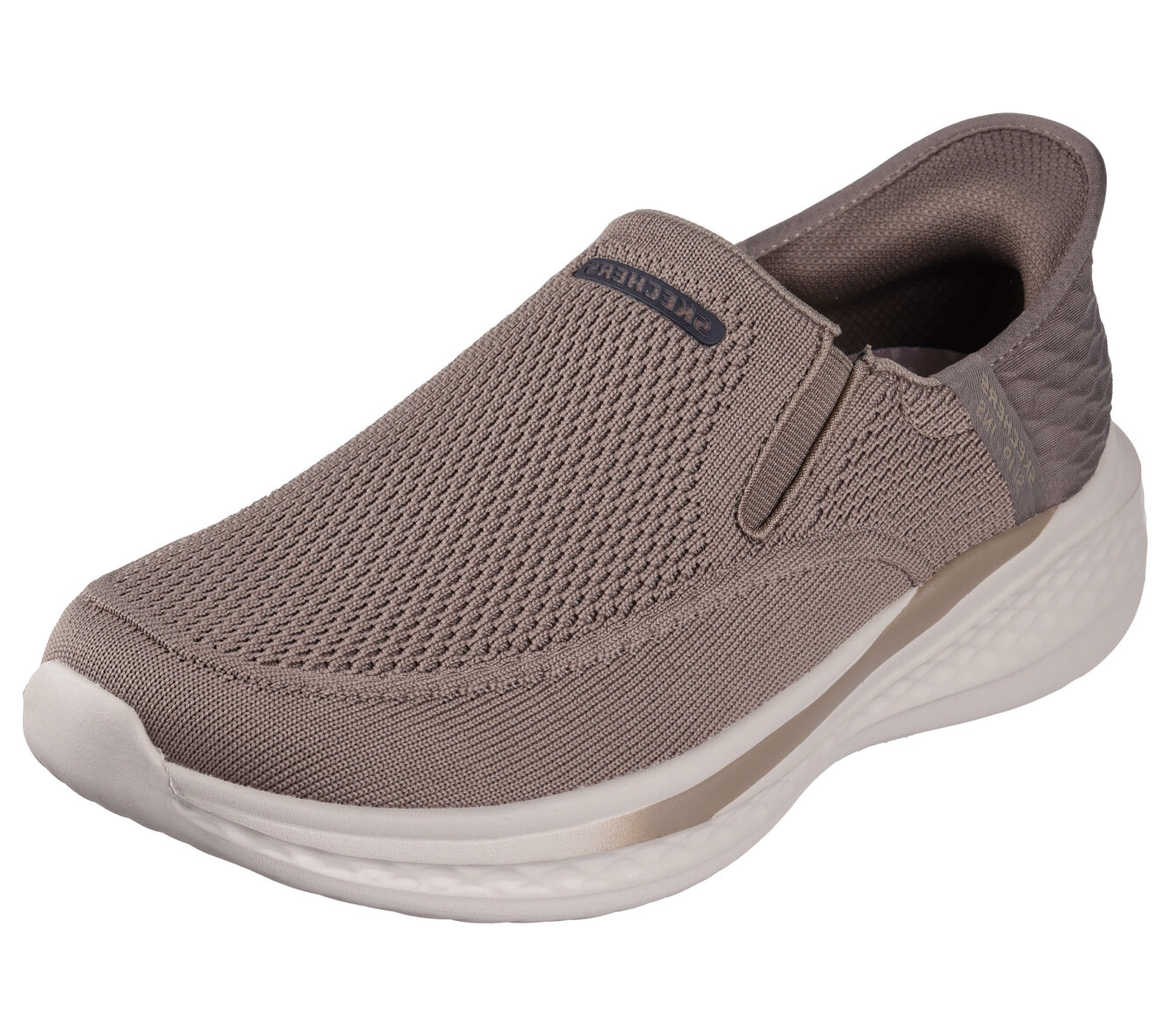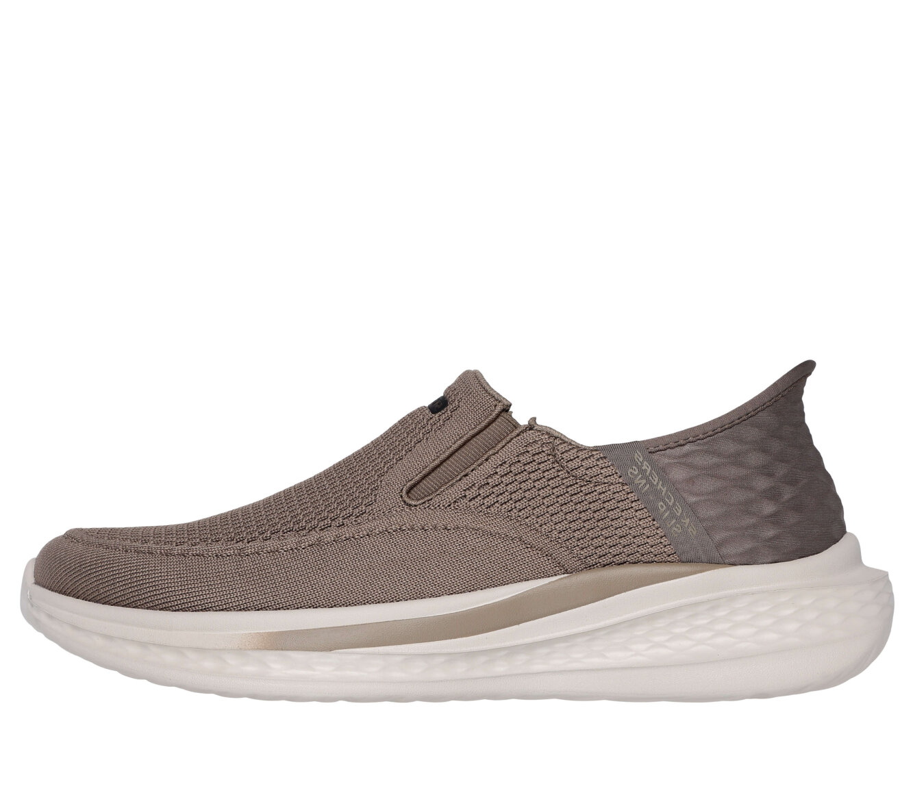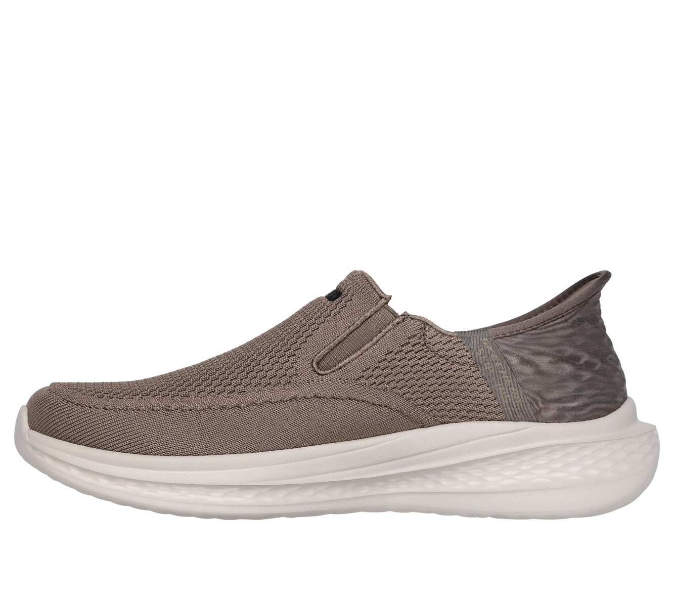 Smarte Hands Free Slip-ins Relaxed Fit: Slade – Deacon sneakers fra Skechers i et smart grå-brunt design. Denne model er lavet i en rummelig pasform med ekstra bredde ved tå og forfod.