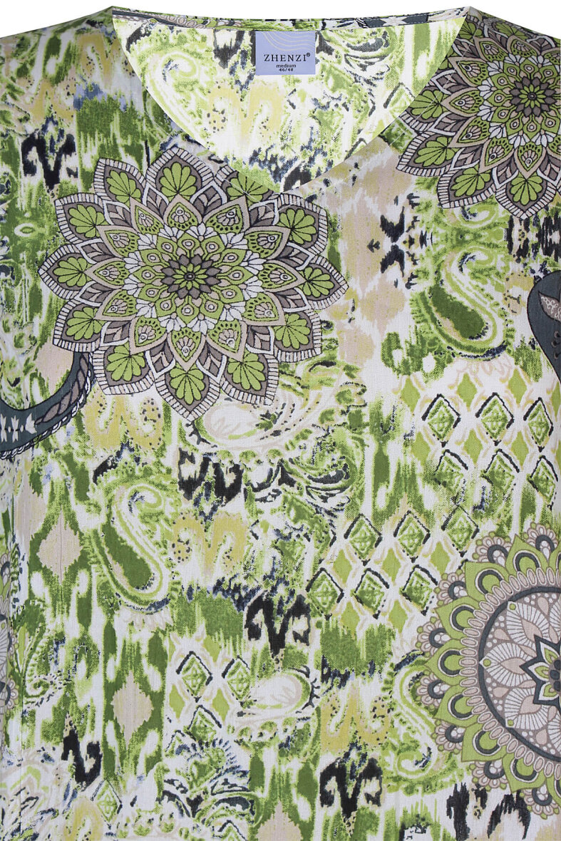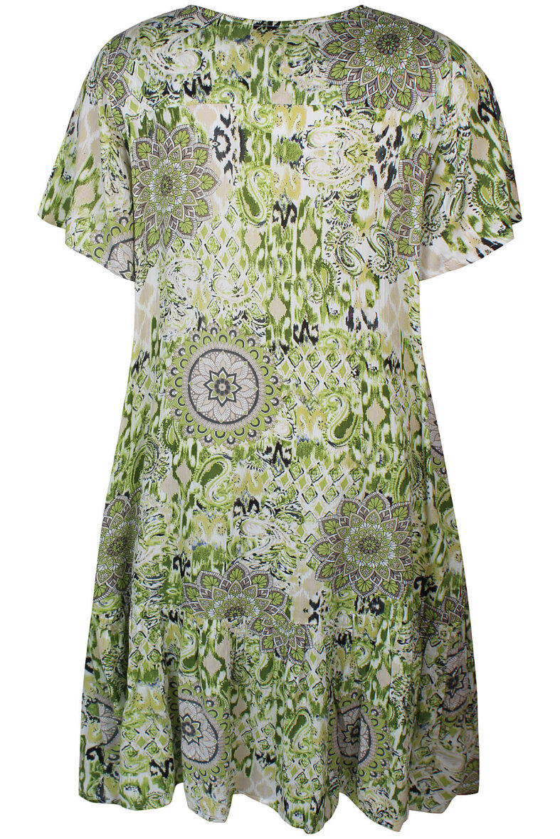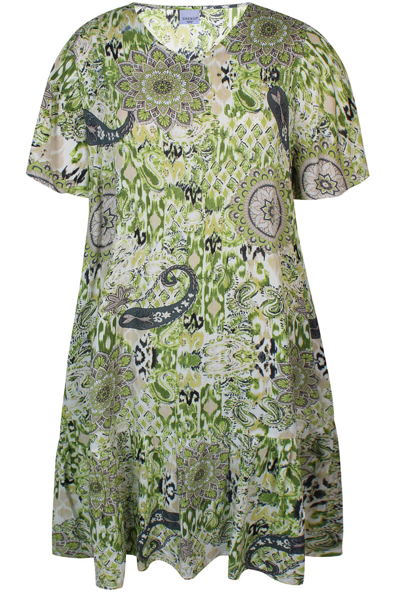 Mønstret kjole i plus size fra Zhenzi i det fineste paisley print i grønne nuancer.