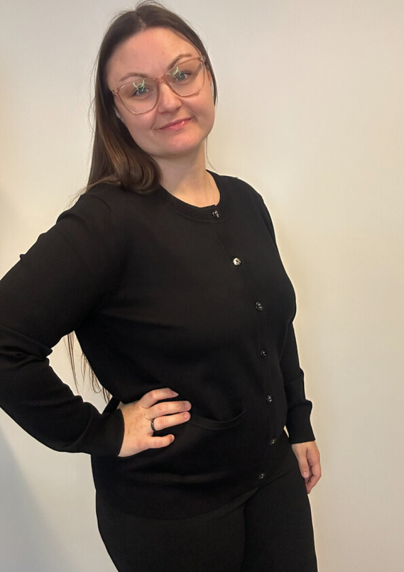 Flot basis cardigan i et sort finstrikket design med fine detaljer fra Brandtex.