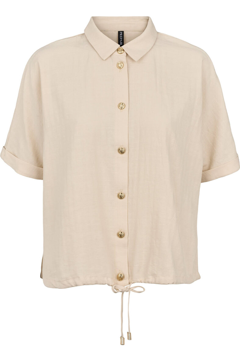 Kortærmet bluse fra Prepair i modellen Lucia i et sandfarvet design.