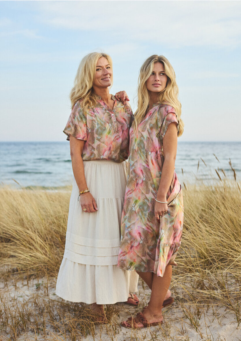 Amora blusen fra 2-Biz er fremstillet i en lækker blanding af viskose og silke, hvilket giver den et smukt og luftigt udtryk når man bærer den.