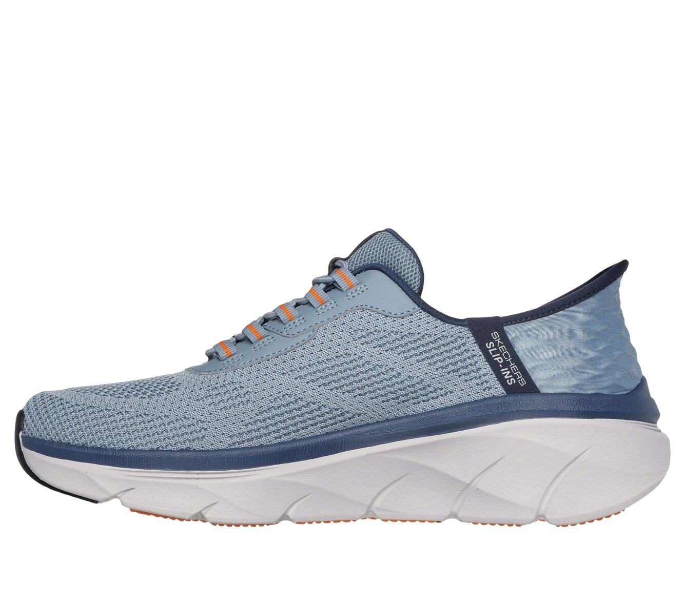Smarte hands free slip-ins fra Skechers i en flot lyseblå farve (slate), som er med til at give et pift til outfittet.