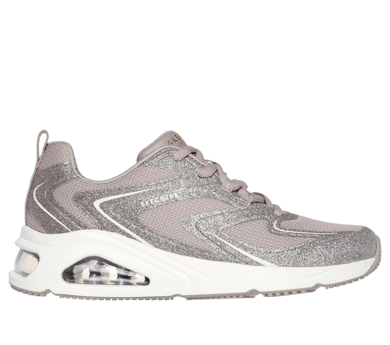 Dejlig lette sneakers i en skøn grå/brun farve (Taupe) med fede detaljer fra Skechers. Tres-Air-Uno Glit-airy er det perfekte valg til daglig brug, som garanterer god komfort.