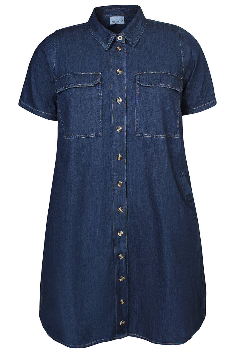 Knælang plus pige kjole i mørkeblå denim look fra fra Zhenzi.